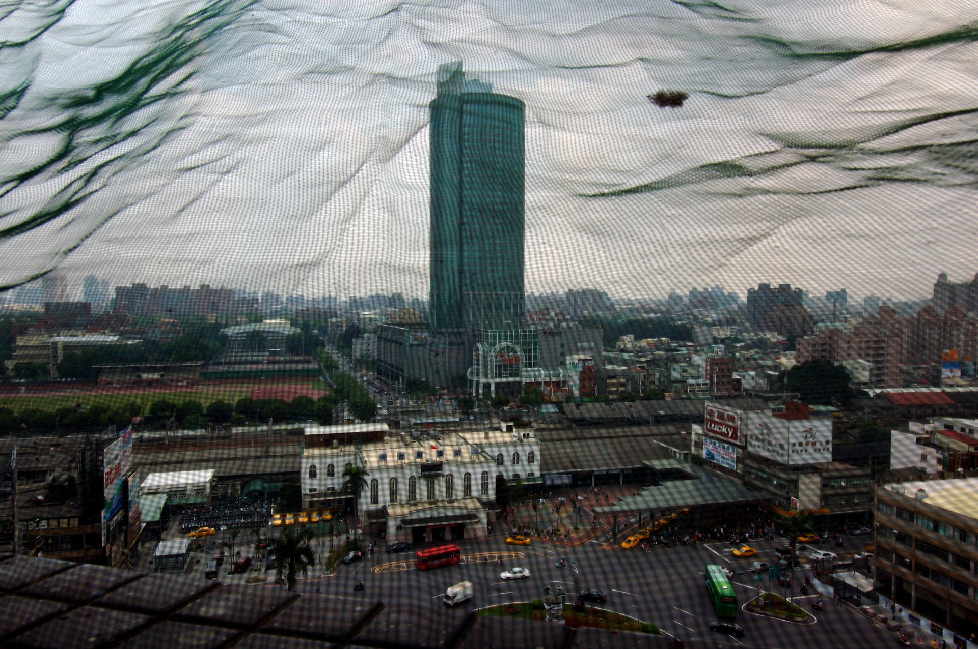 城市印象 張家豪地點:台南火車站前大樓頂從大樓樓頂透過綠色護網俯看整個火車站,與後方的地標遠東百貨大樓,以這張作為整個系列的第一張相片,是個很棒的開始。