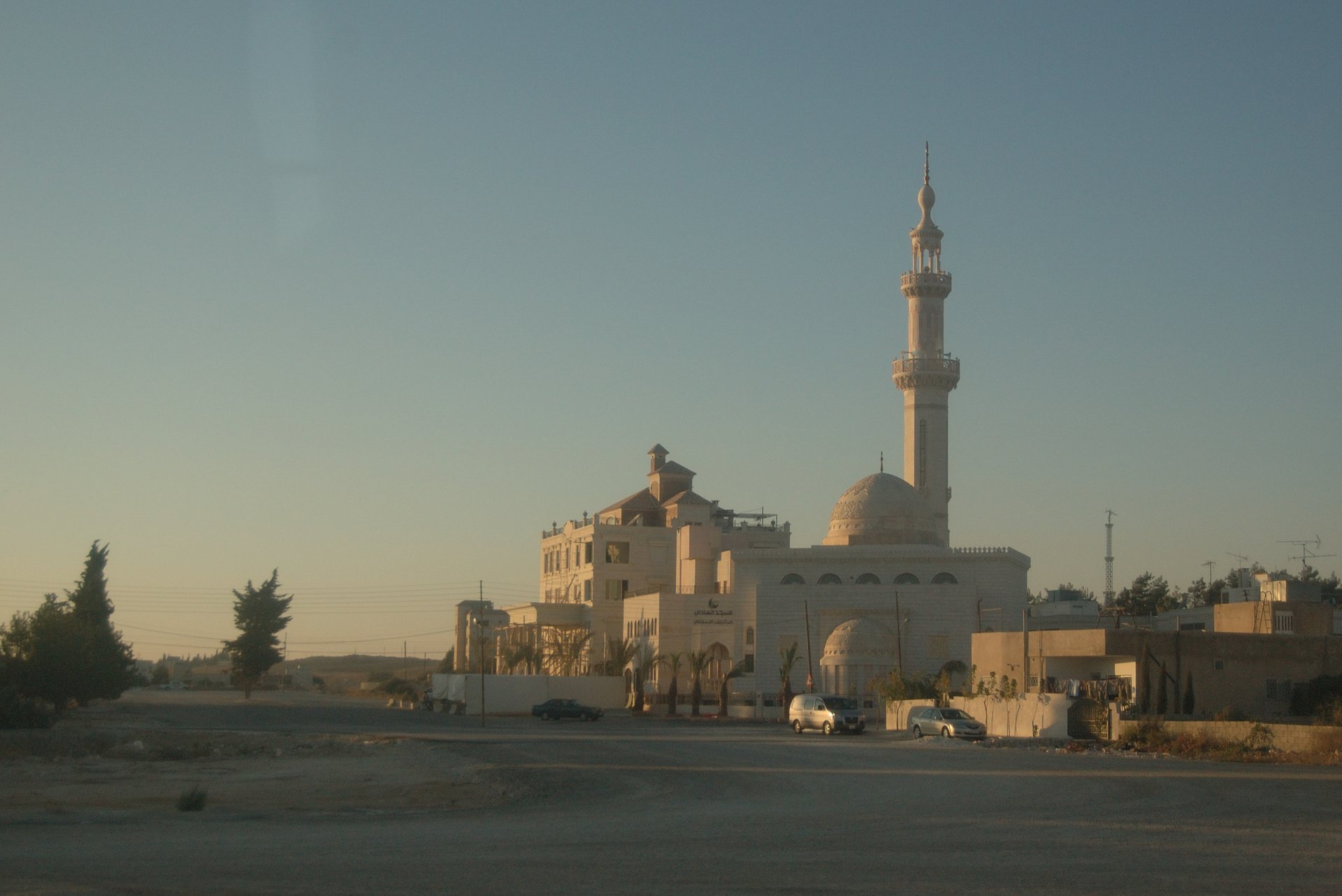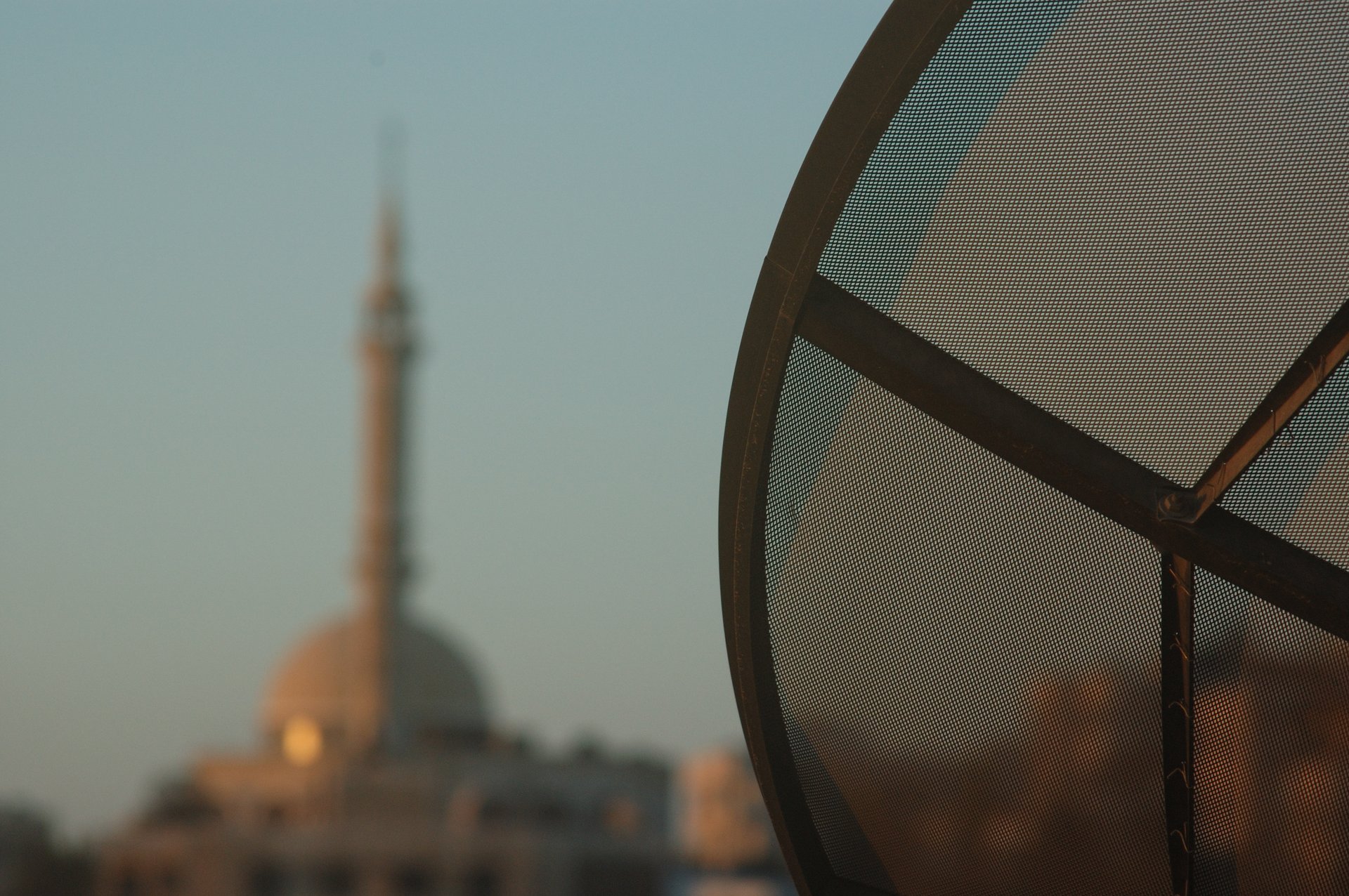 Amman 阿曼爬上旅館屋頂,發現衛星天線後方的清真寺,既莊嚴又神秘。