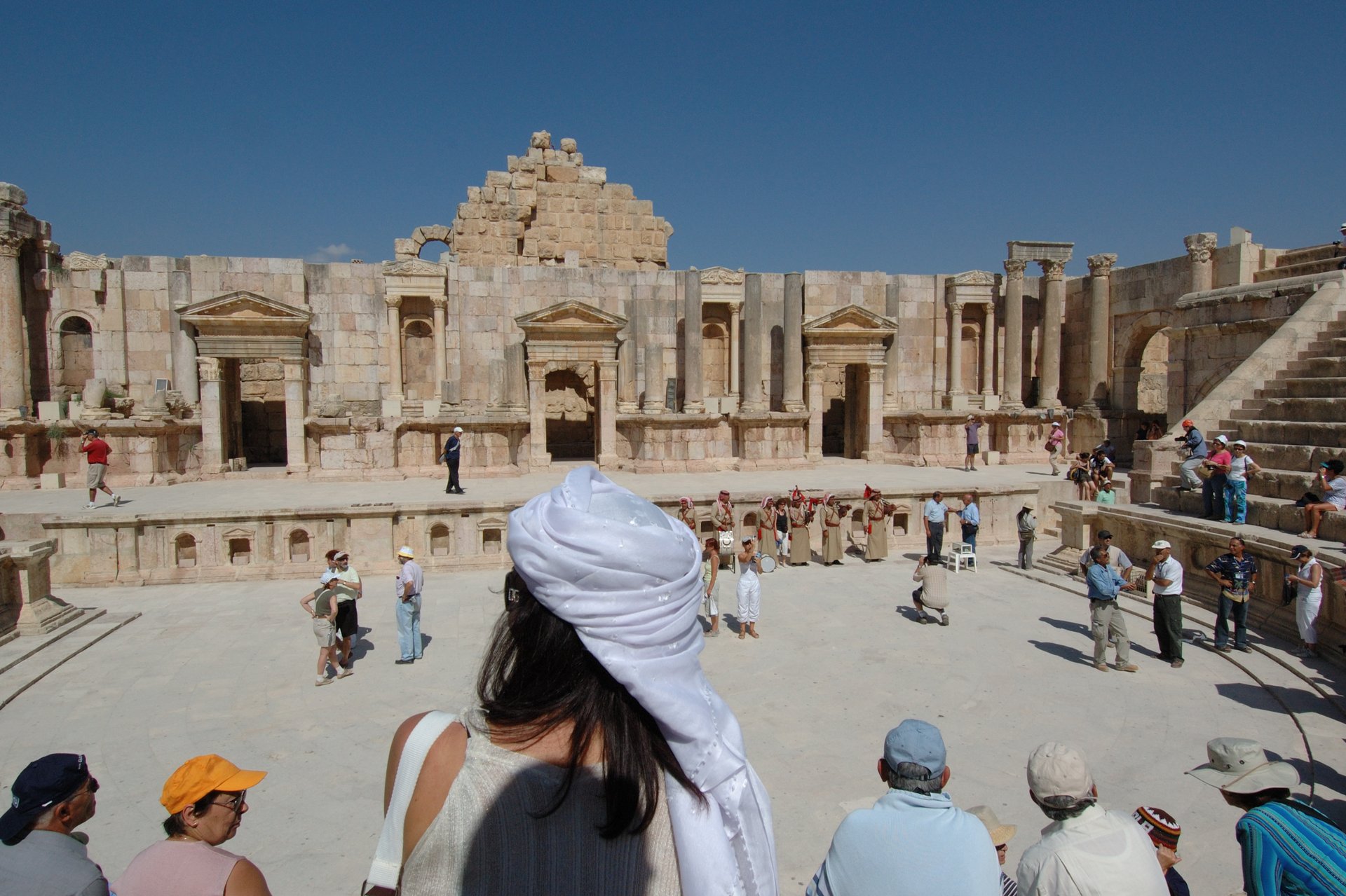 Jarash 哲也許這座可容納五千人羅馬式半圓形劇場,在觀眾席最頂端,可以清楚聽到劇場中央,表演者清晰響亮的歌聲。