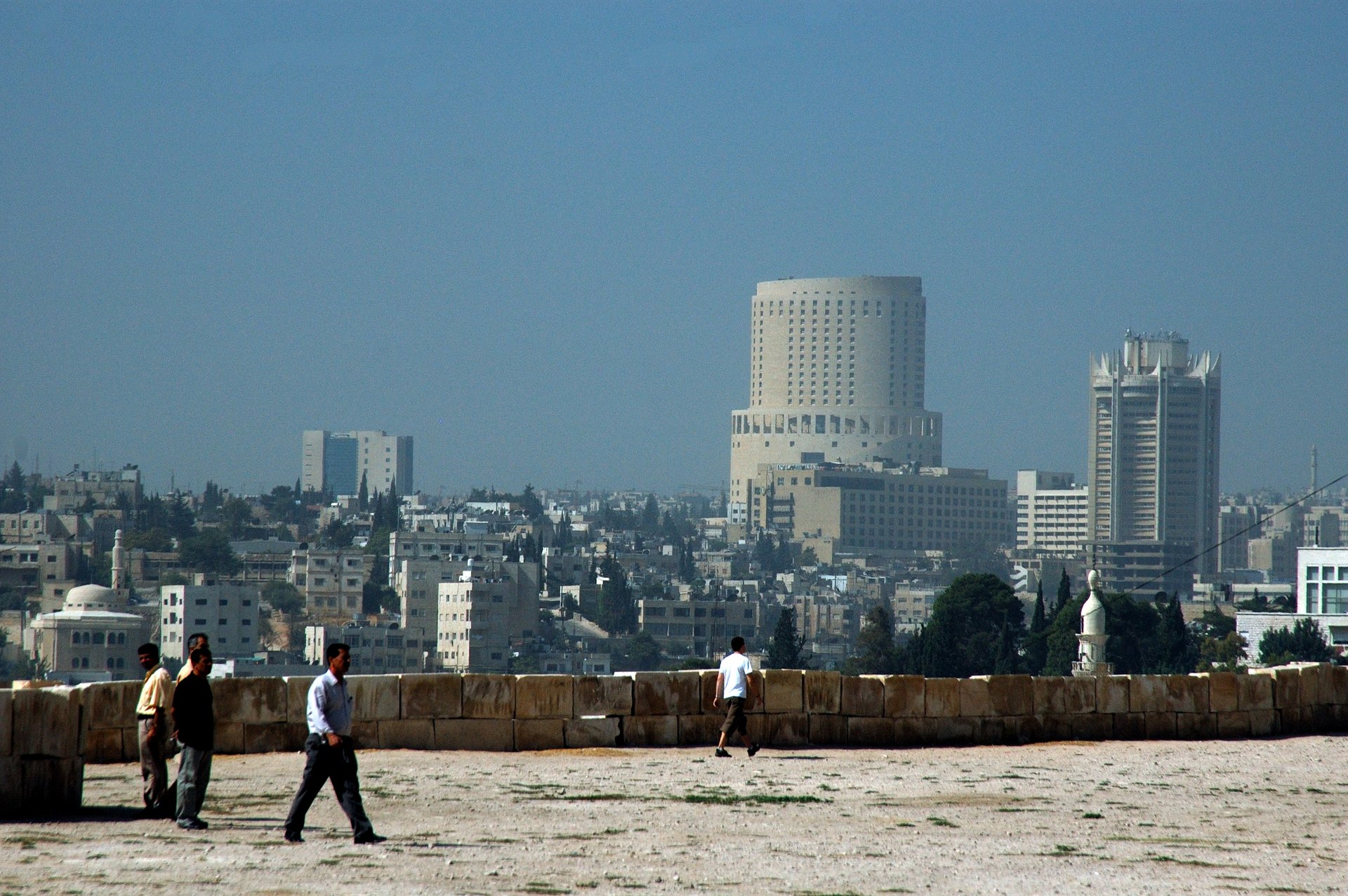 Amman 阿曼從附近的山上舊城牆,遠眺阿曼現代化的建築物,新舊間有強烈的對比。