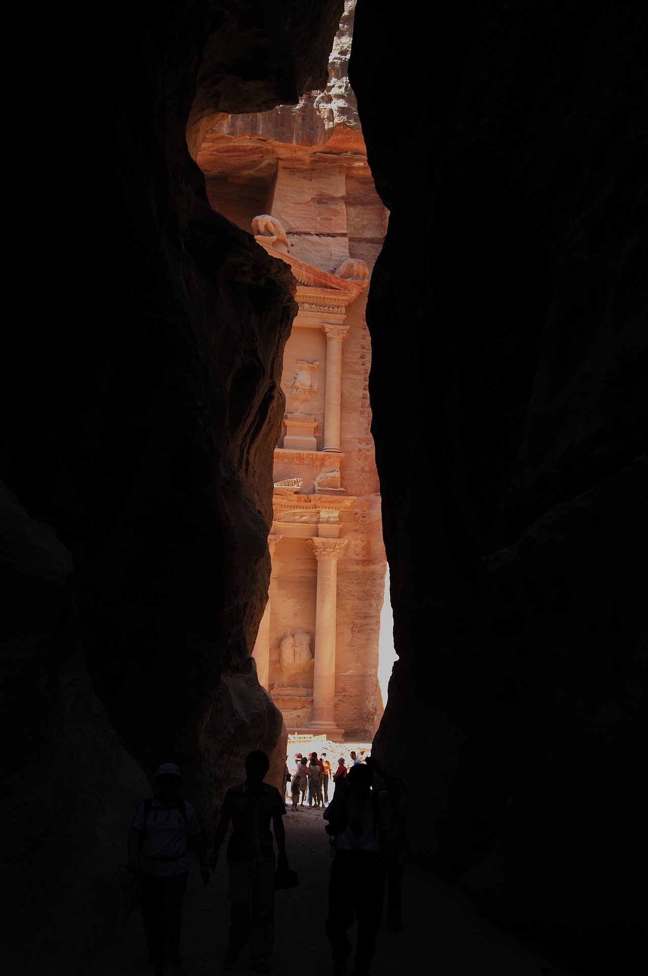 petra 佩特拉蛇道(Siq)的盡頭就是大大有名的Al Khazneh神殿,這個有「法老王的寶庫」之稱的神殿有許多不同的傳說,我最喜歡的版本是:阿里巴巴與40大盜將搶來的財寶藏於此地,可惜我們進入觀賞時殿內當然空無一物。