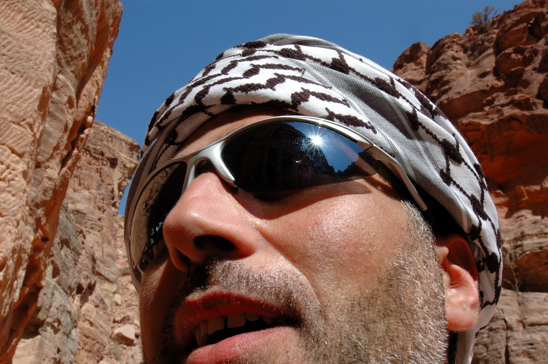 petra 佩特拉我們帥氣的約旦嚮導Raed,我試圖從他絢目的眼鏡,反射出雄偉壯麗Al Khazneh神殿,可惜因陽光角度不對而失敗。