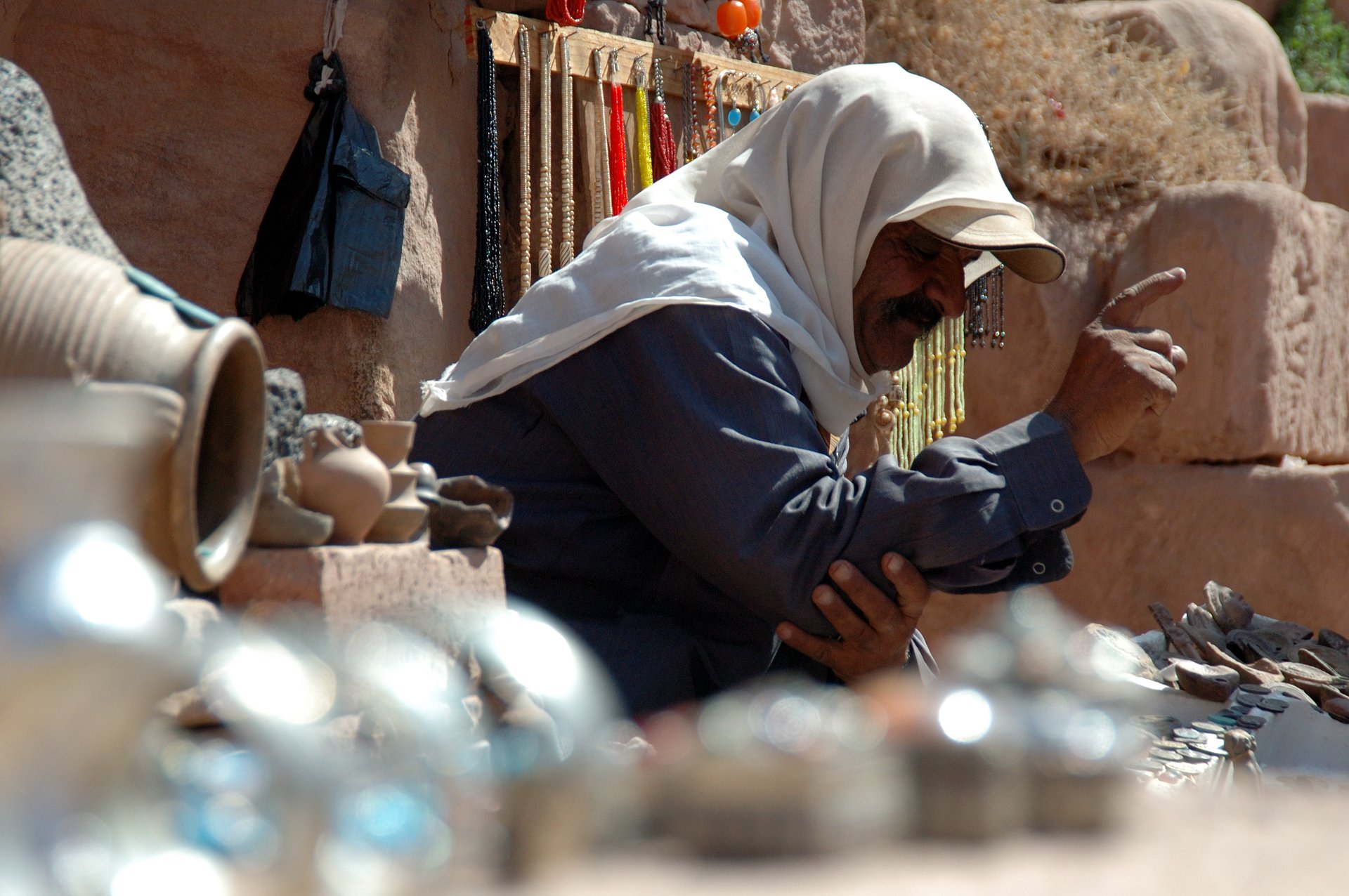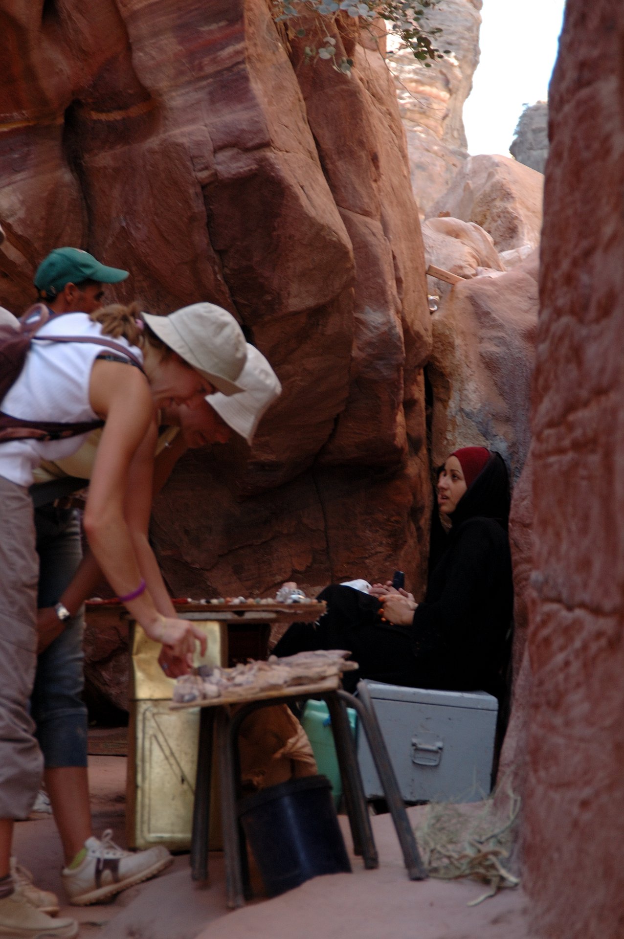 petra 佩特拉古城區內有許多貝都因人擺設的小攤子,販售著廉價首飾及玫瑰花紋的小石頭。
