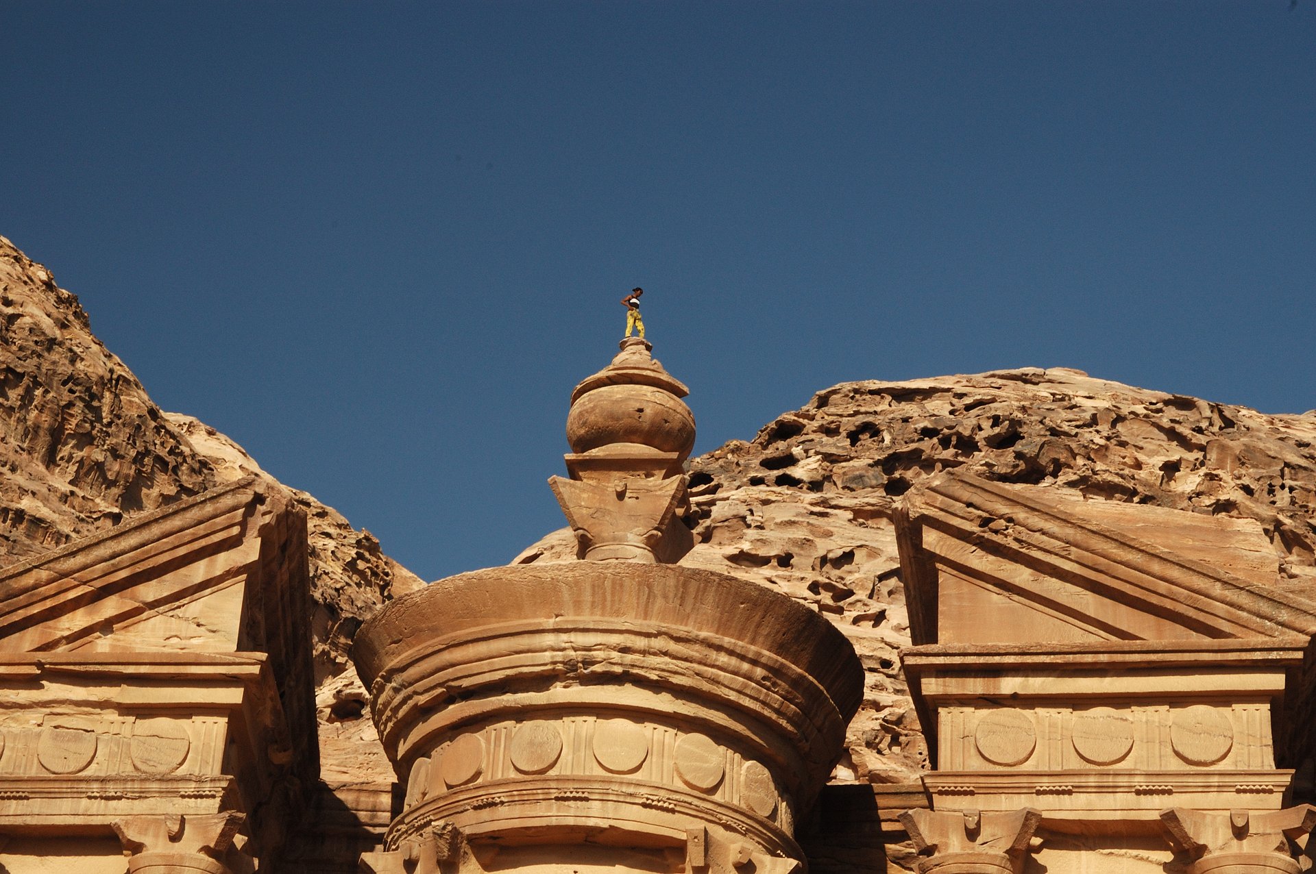 petra 佩特拉修道院的屋頂還有人爬上去表演特技。