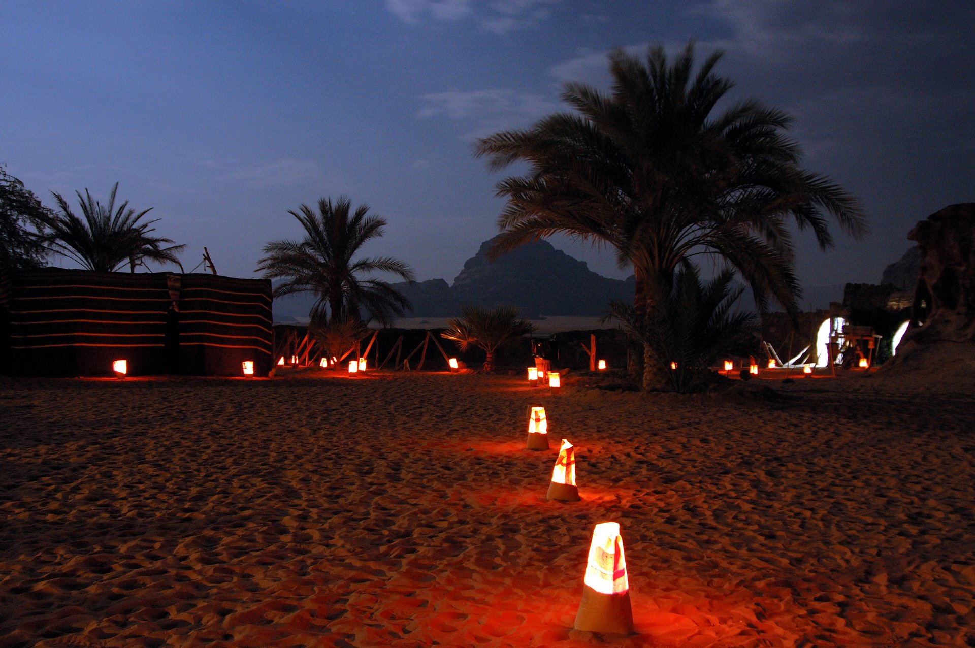Wadi Rum 瓦第倫營帳區的燭火是用牛皮紙袋裝沙,再插上蠟燭暨環保又美麗,跟petra的月光之夜一樣都是貝都因人的巧思。