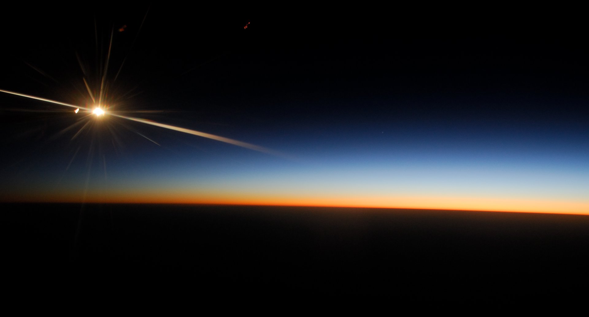 沙烏地阿拉伯上空在搖搖晃晃的機艙中醒來,有點困難地穿越帥哥與美女層層包圍,想走到洗手間。突然透過機尾窗戶我瞥見日出前的晨曦,急忙的返回座位拿來相機拍下這影像,我的希臘愛琴海之旅就此開始。