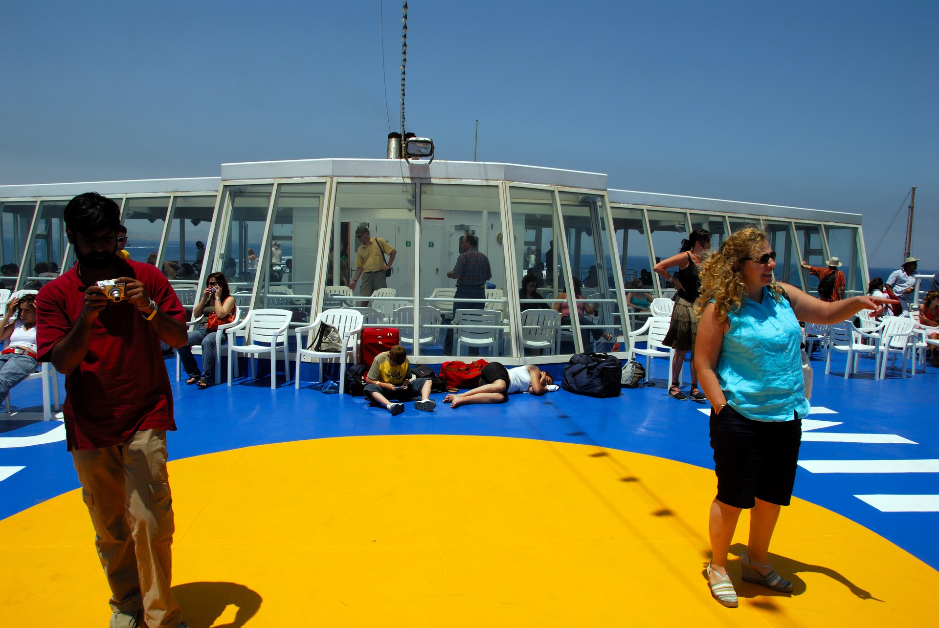 愛琴海上坐往Paros的渡輪上,老外真的很愛曬太陽,中午時分就躺在甲板上睡著了。