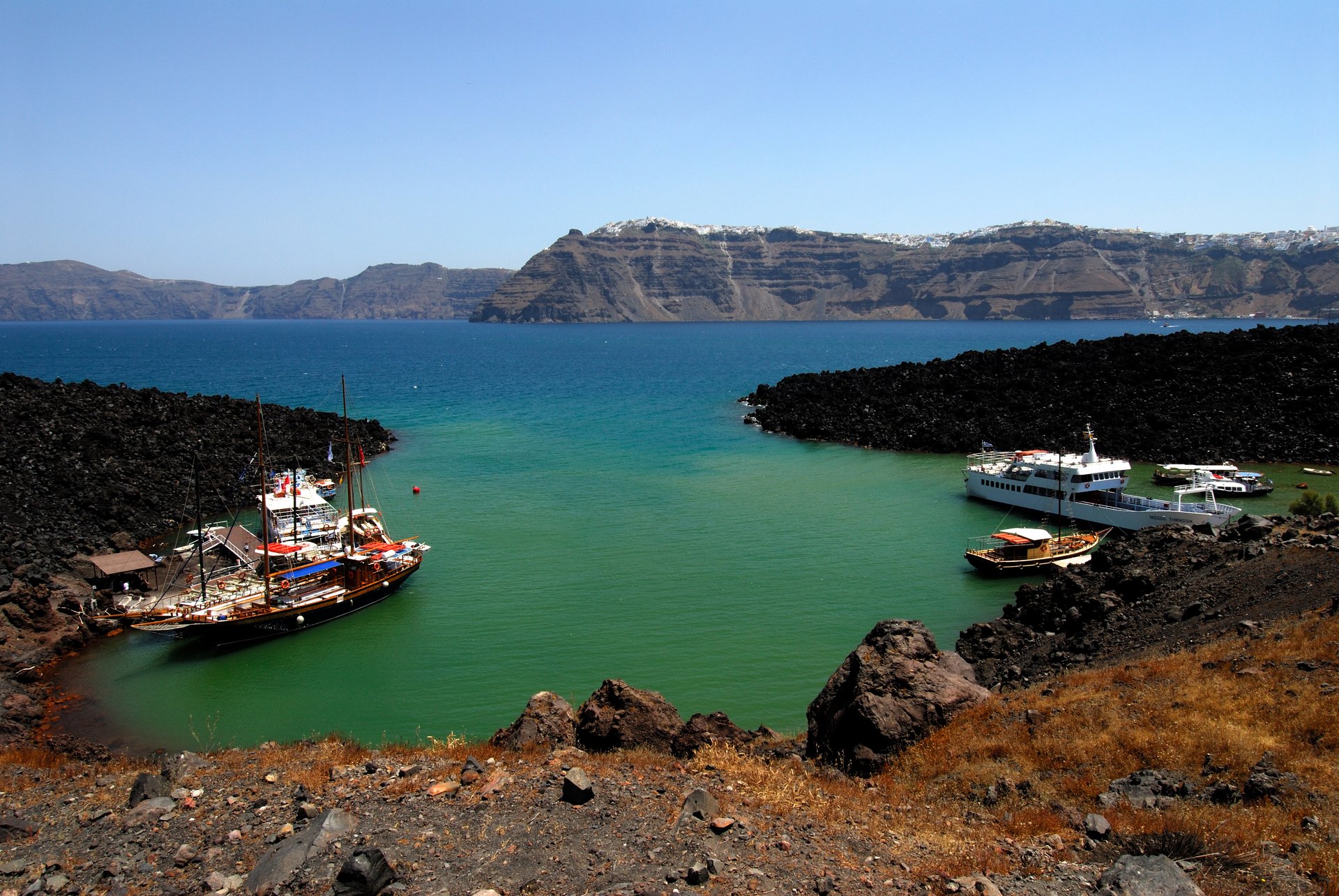 Nea Kameni 納亞卡美尼納亞卡美尼島位於聖托里尼的對面,是座無人居住的火山島, 海水綠的嚇人,但又很清澈。
