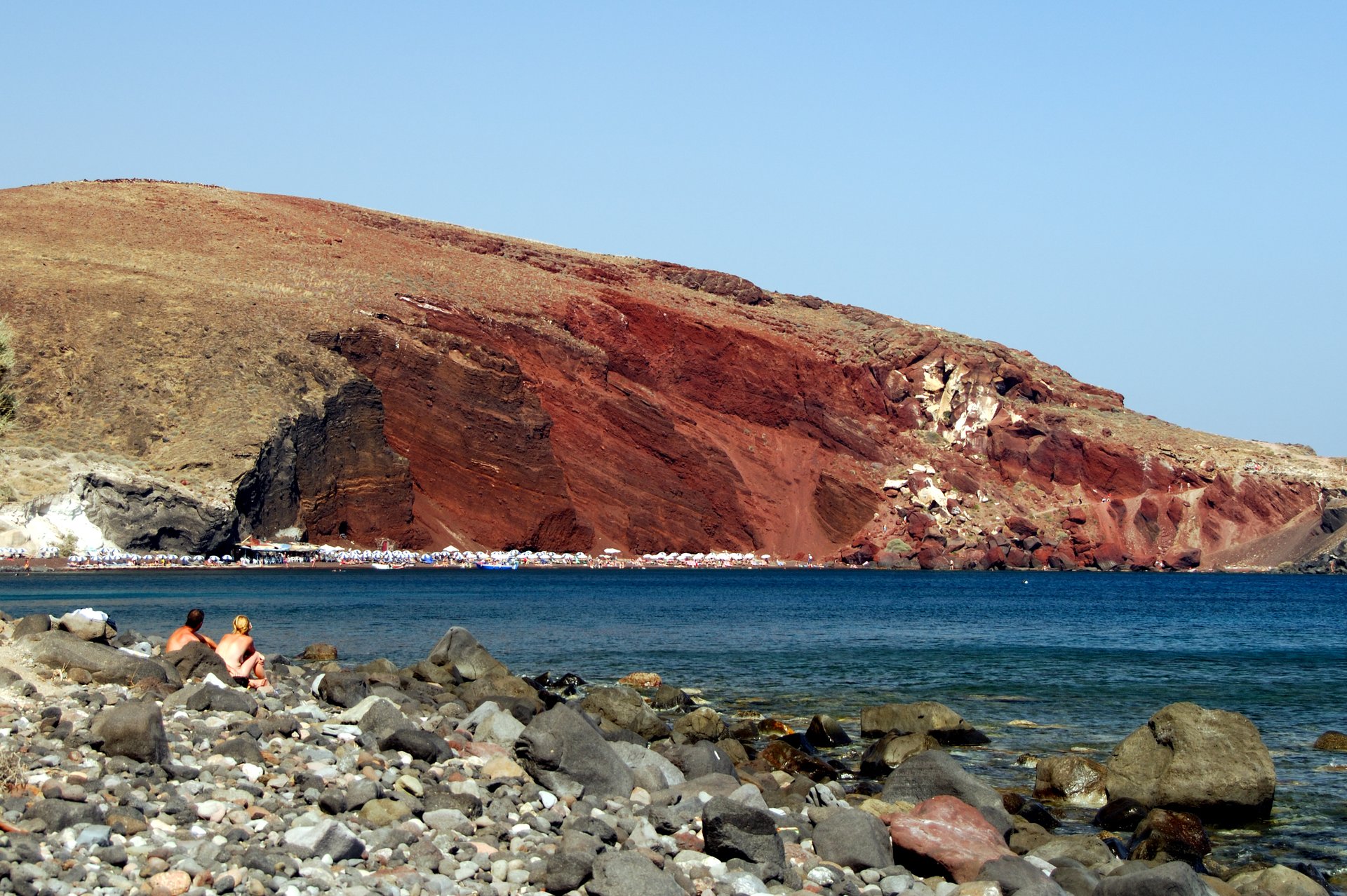 Santorini 聖托里尼本來是要騎去有名的紅沙灘,不過晃啊晃著,就來到一處私密沙灘。可以遠眺紅沙灘美景,還有 嘿嘿嘿!既然是私密海灘就是有粉多....