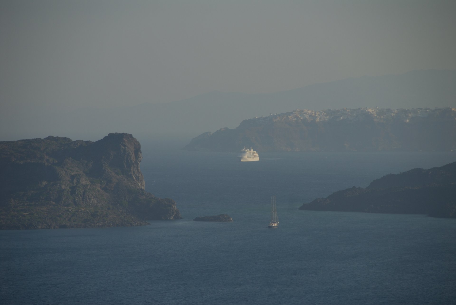 Santorini 聖托里尼藍色的愛琴海今天有點憂鬱,霧霧朦朦的氣氛更好了。