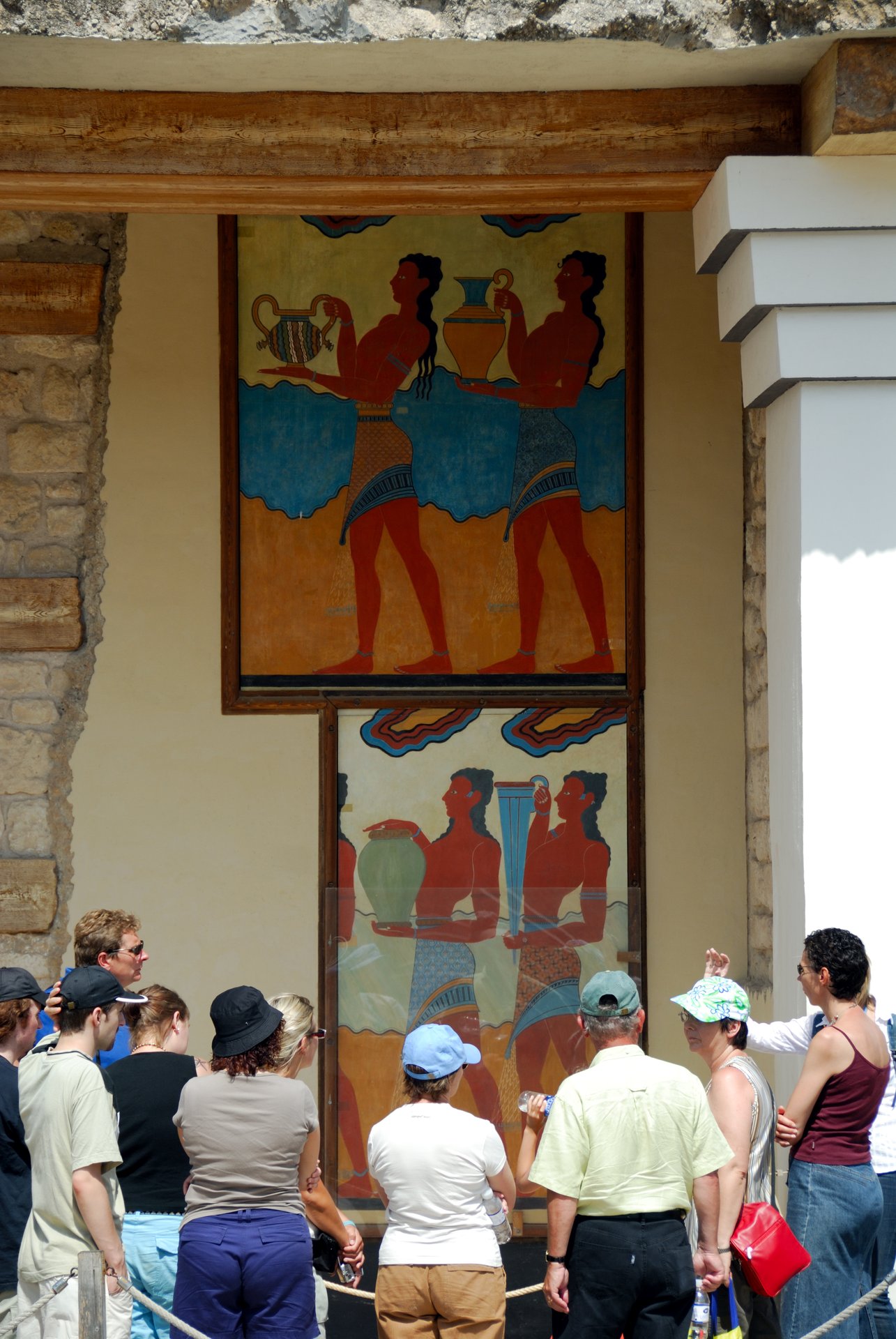 Iraklion 伊拉克里翁克諾索斯皇宮的南入口,牆上有兩張兩位侍者拿著聖物的壁畫。