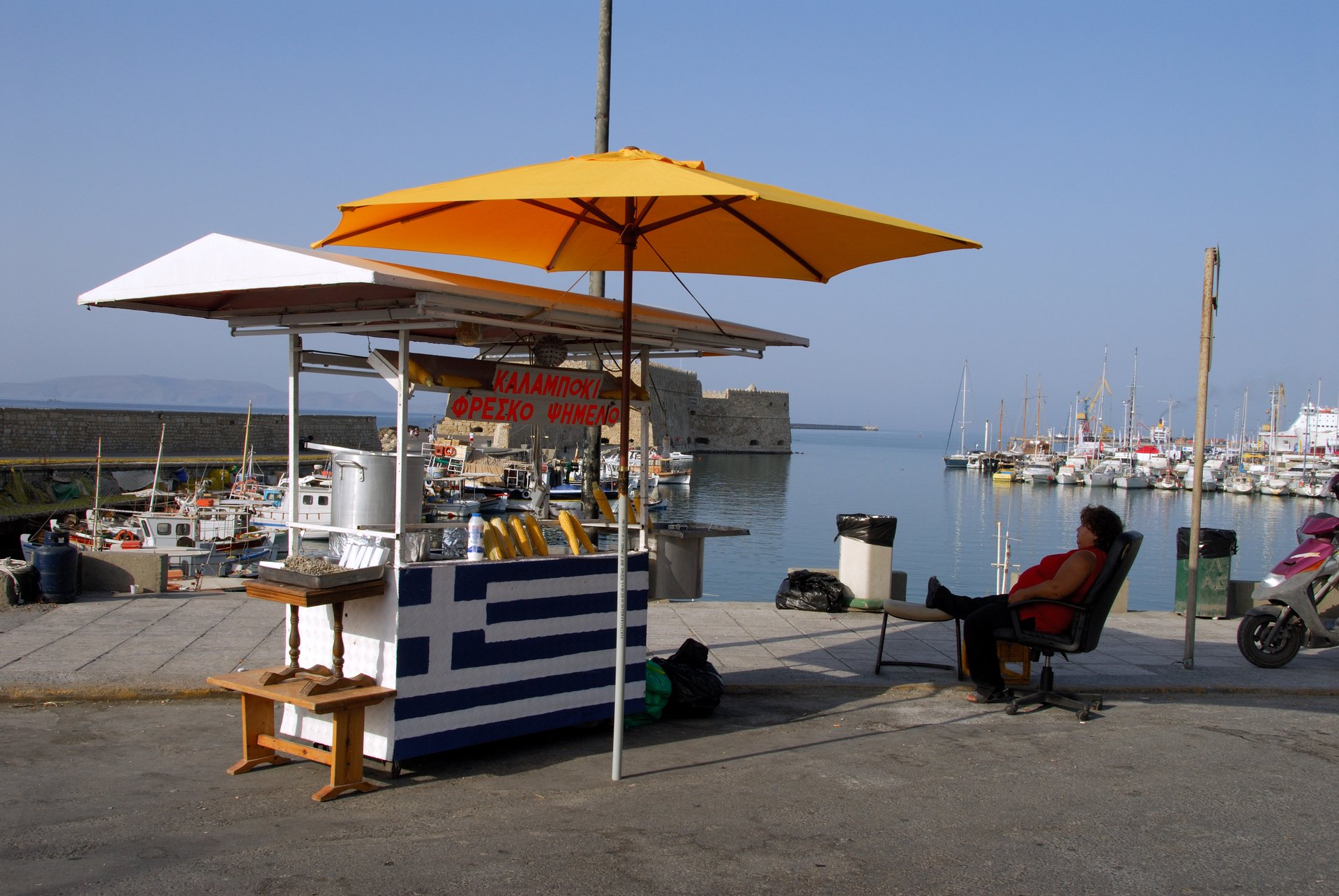 Iraklion 伊拉克里翁大家都躲在家裡看世界盃足球賽,沒有人跑來港口買我的水煮玉米,生意真難做。