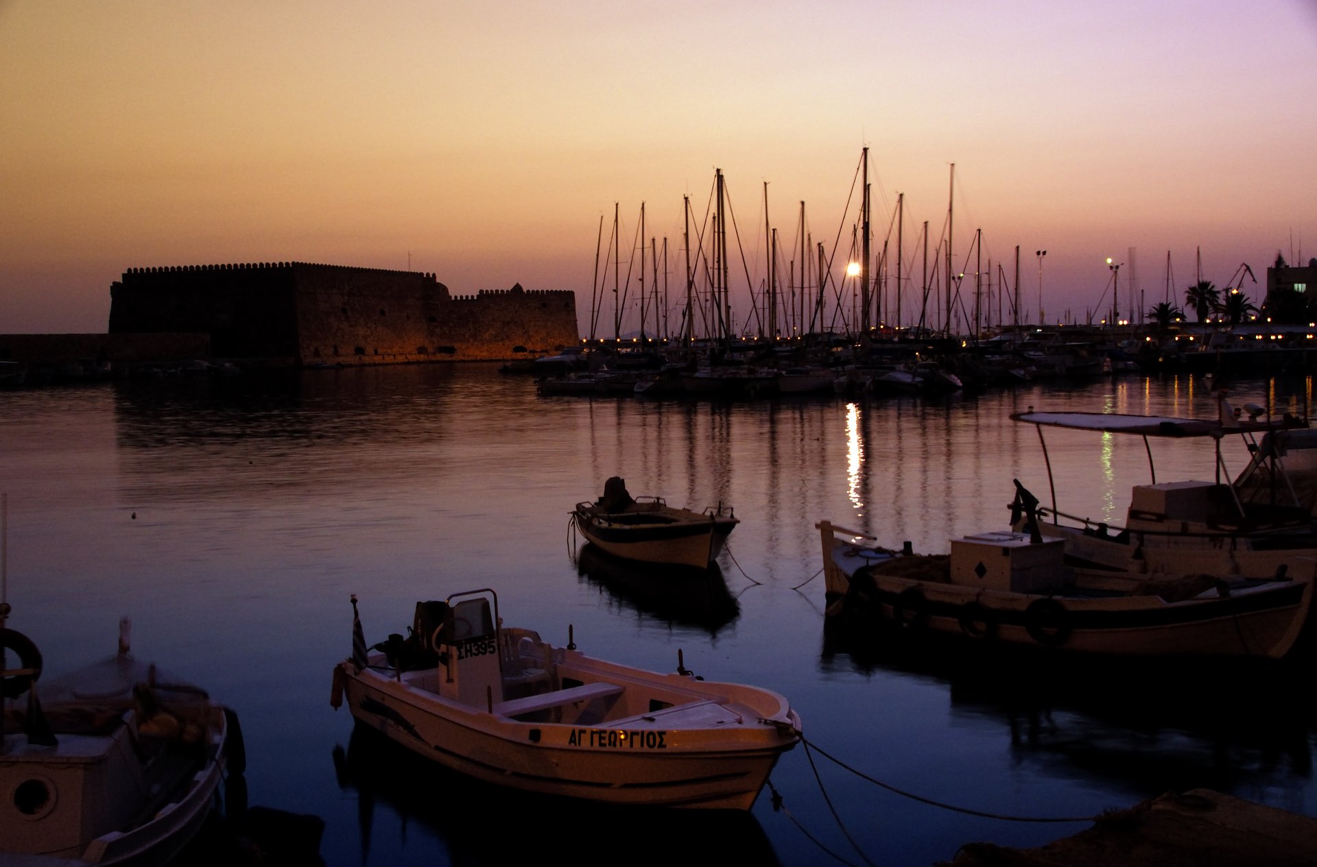 Iraklion 伊拉克里翁清晨五點多我照往例又來到港口邊,不要誤會,中間亮的是水銀燈,太陽還沒有比我早起床。