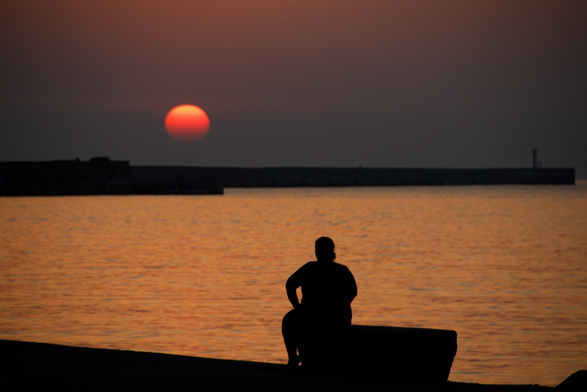 Iraklion 伊拉克里翁當我面對海邊拍照時,我聽到身旁啜泣的聲音。我回看見她,淚流滿面的走過我眼前。我舉起相機拍下她孤寂的背影,但願我的默默祝福能伴隨她而去。