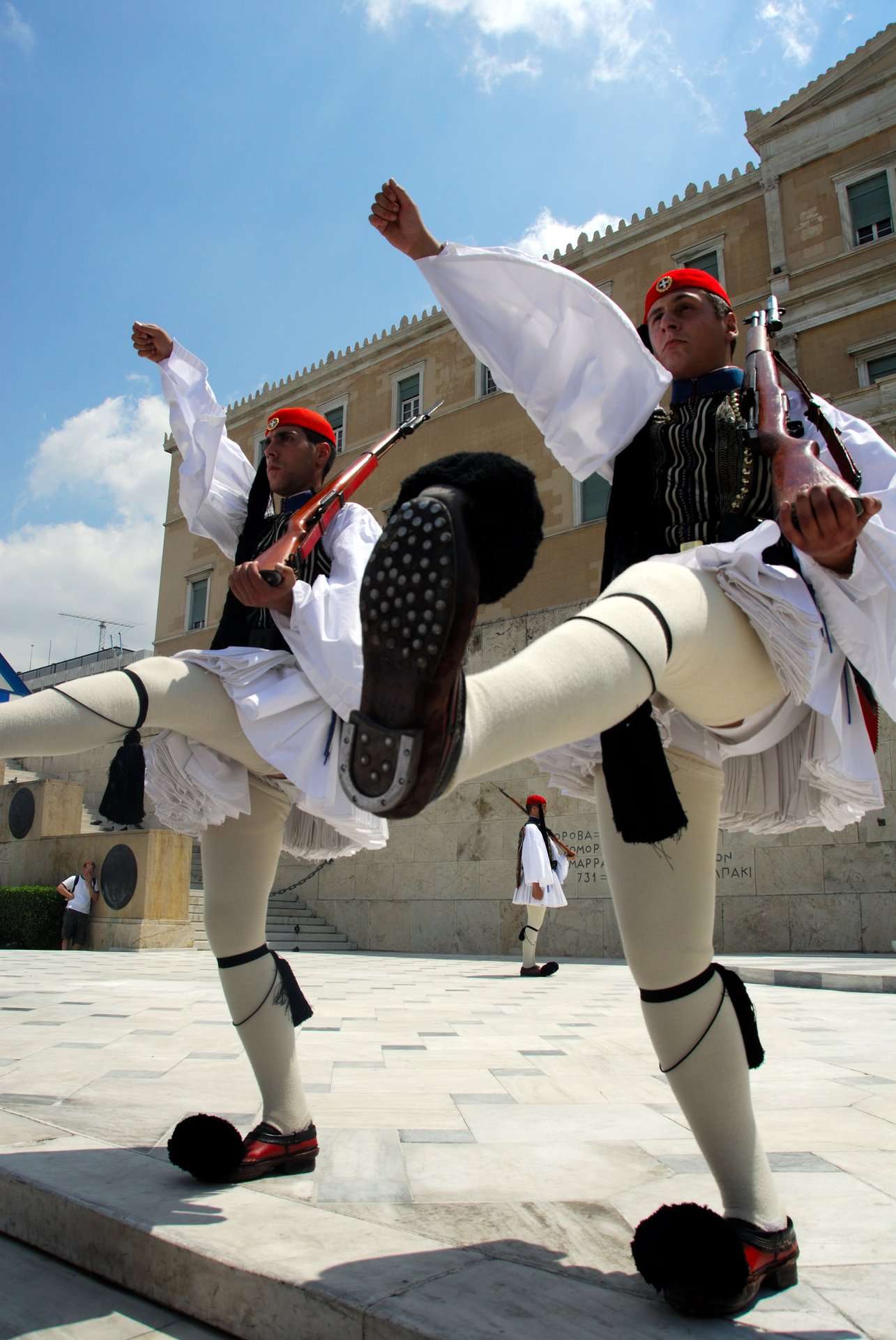 Athens 雅典 憲法廣場憲法廣場的衛兵交接儀式,是許多到雅典的遊客必看的景點。尤其是週日早上十一點會擴大演出,有警車開道,還有鼓號樂隊同行,熱鬧非凡。