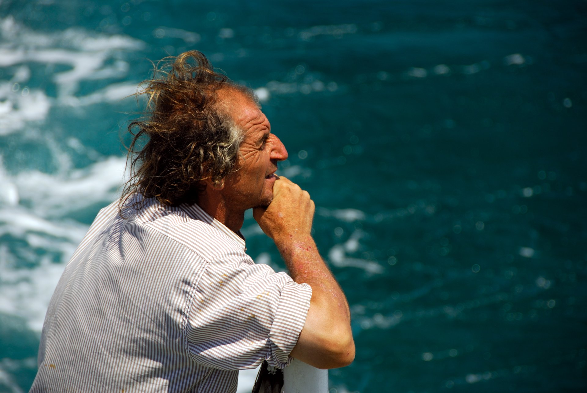 Delos提洛島坐往Delos島的小渡輪,船上飽經風霜水手,面對大海是在沉思,還是再回憶從前的行船往事。