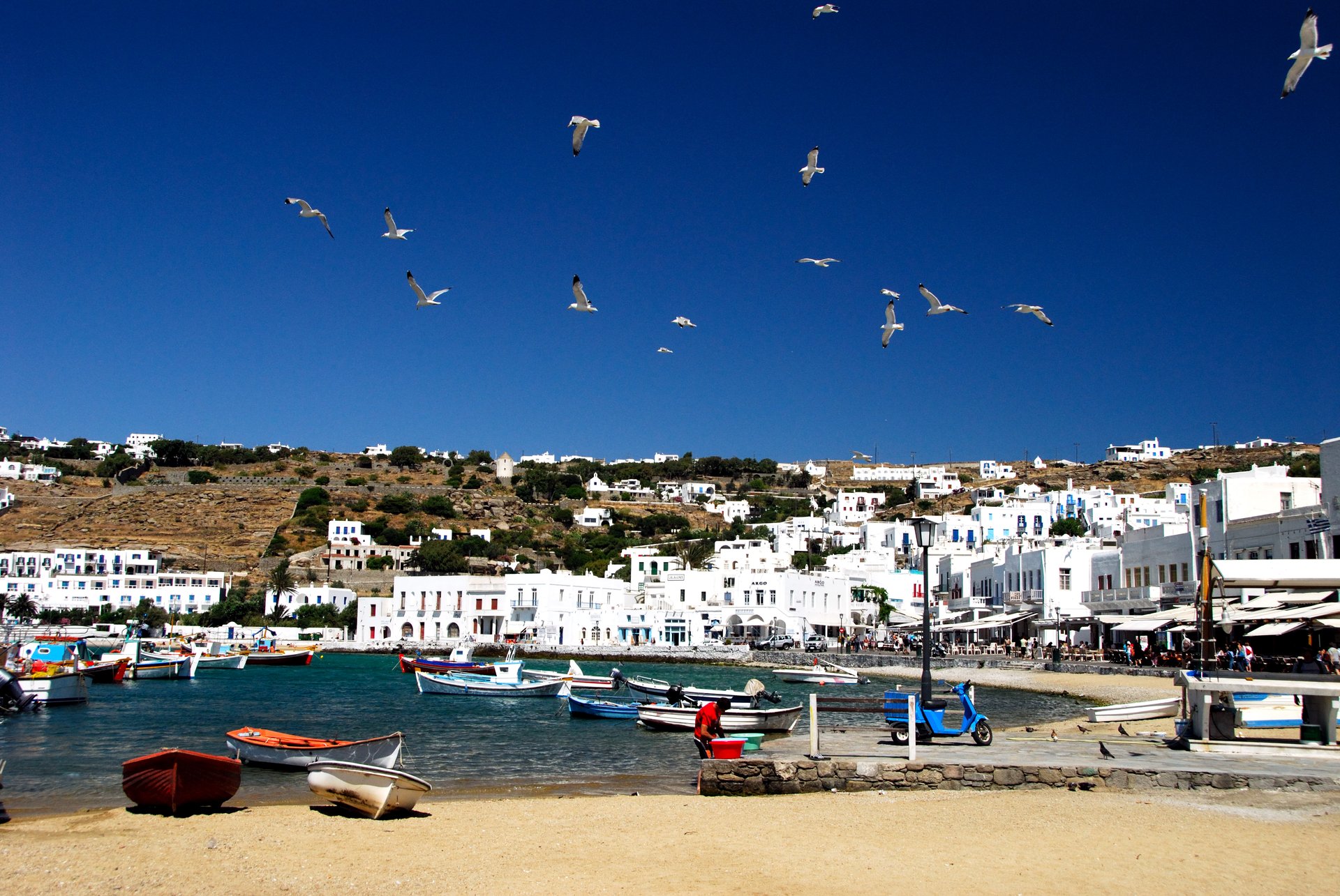 Mykonos米克諾斯Mykonos港口漂亮的港灣與海鷗,傳說中愛吃的鵜鶘,今天卻沒有上班。