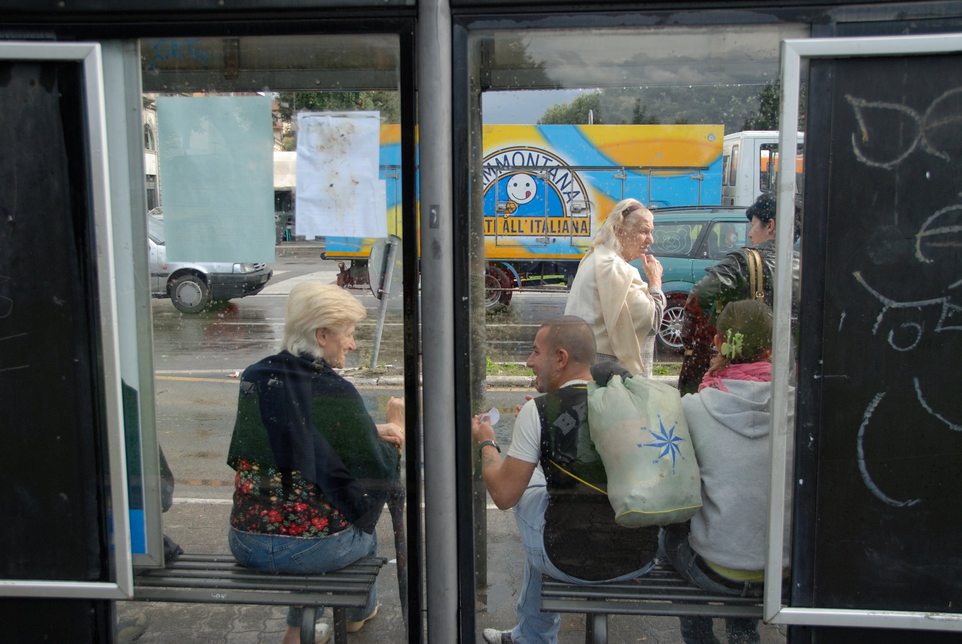 Arezzo 阿雷佐火車站前的公車站,人來人往,我坐在這裡休息了一會,拍下許多我喜歡的相片。