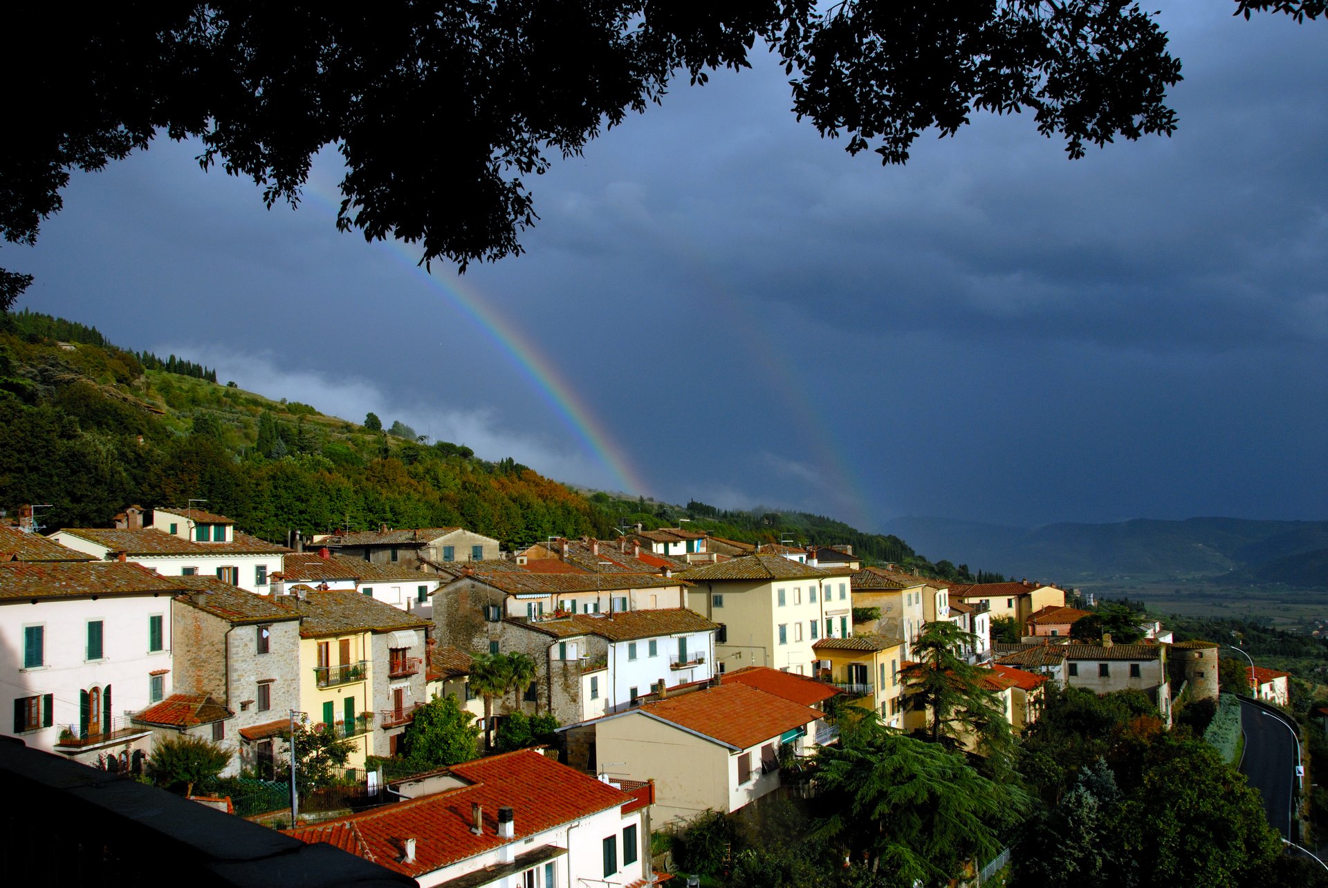 Cortona 科托納午後雷陣雨過後,陽光露出笑臉,伴隨而來的彩虹,讓我滿心歡喜的欣賞了一會兒,兩道彩虹倏然出現,急忙間我拍下這美麗的相片。