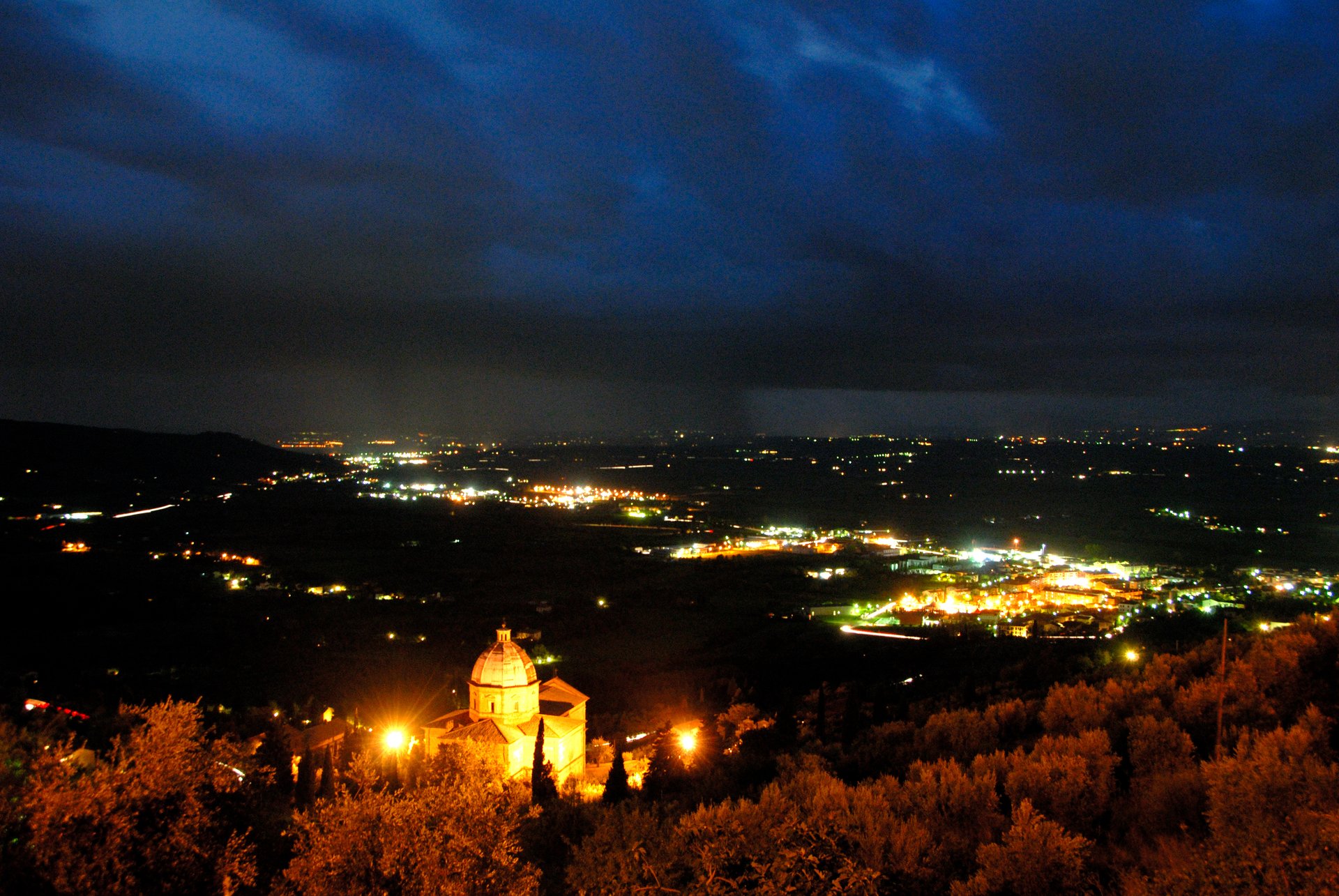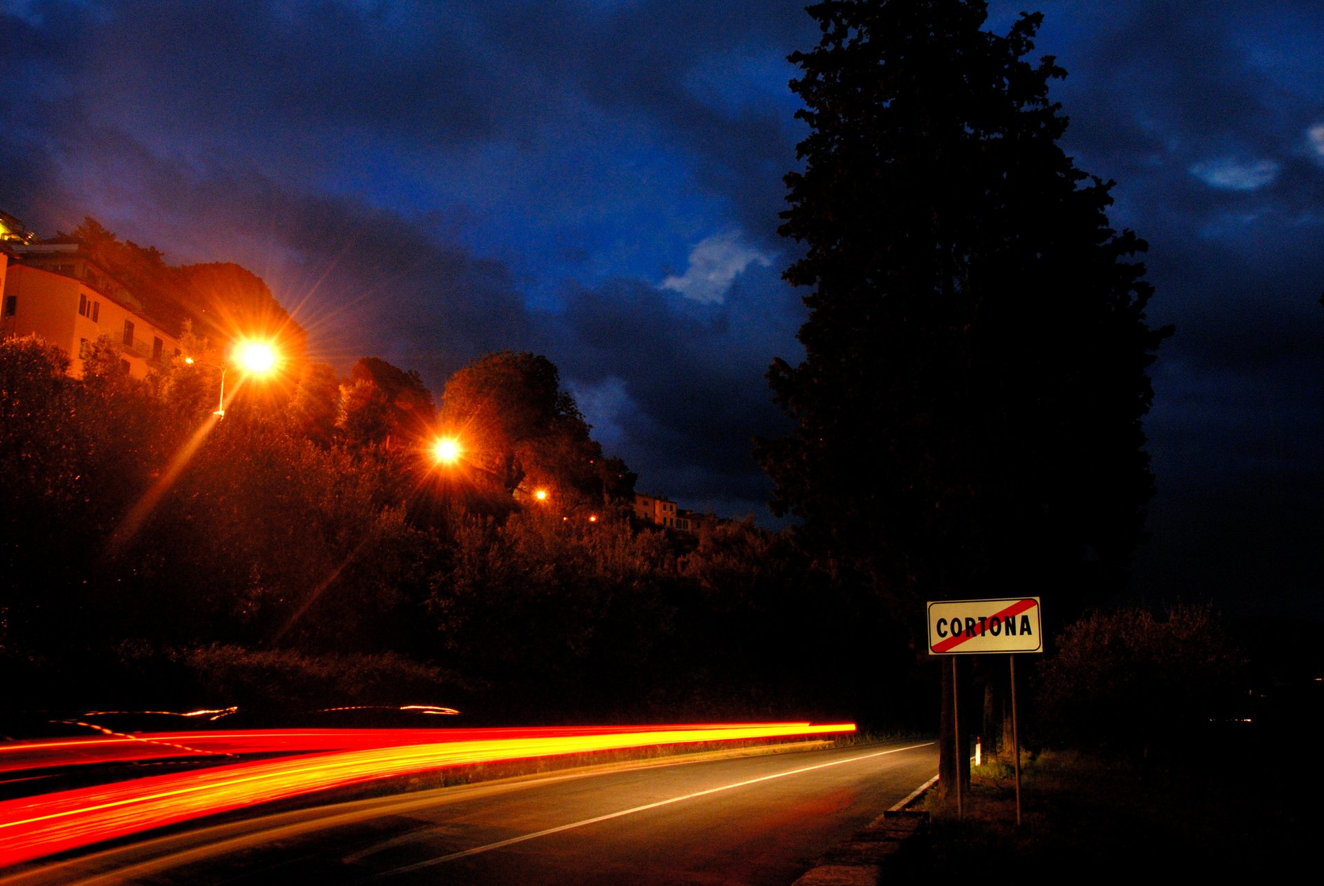 Cortona 科托納晚間七點,我走在Cortona公路上拍攝夜景,秋天裡夜的托斯卡尼風有點涼,景色很迷人。