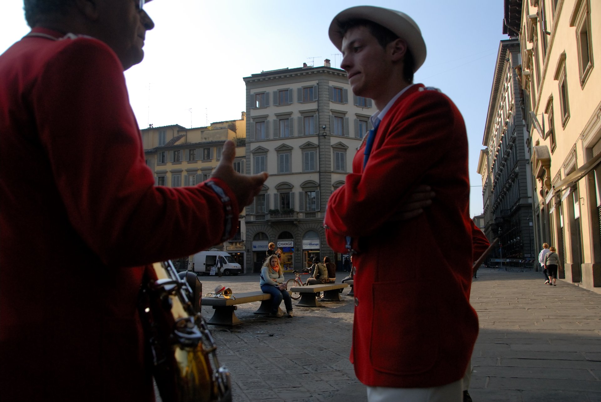 Florence 佛羅倫斯街頭藝人在佛羅倫斯處處可見,這個行業好玩但也很辛苦,收入是看天吃飯,天氣好壞左右了收入的多寡。