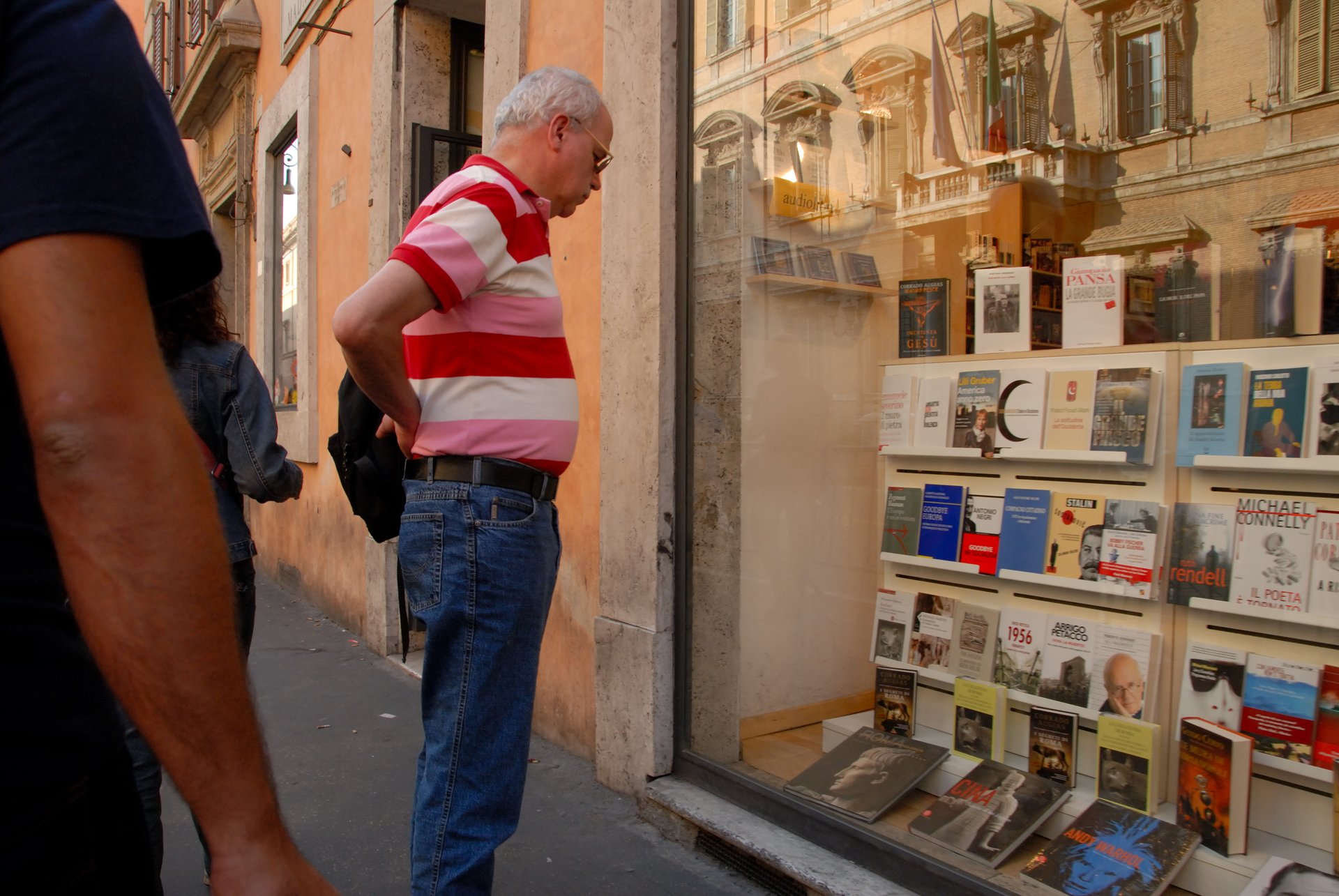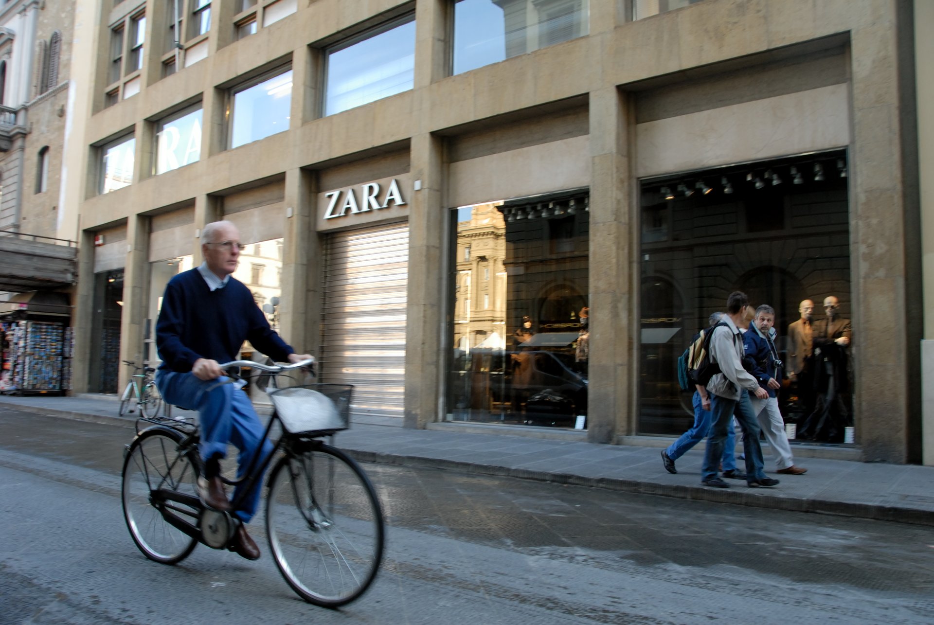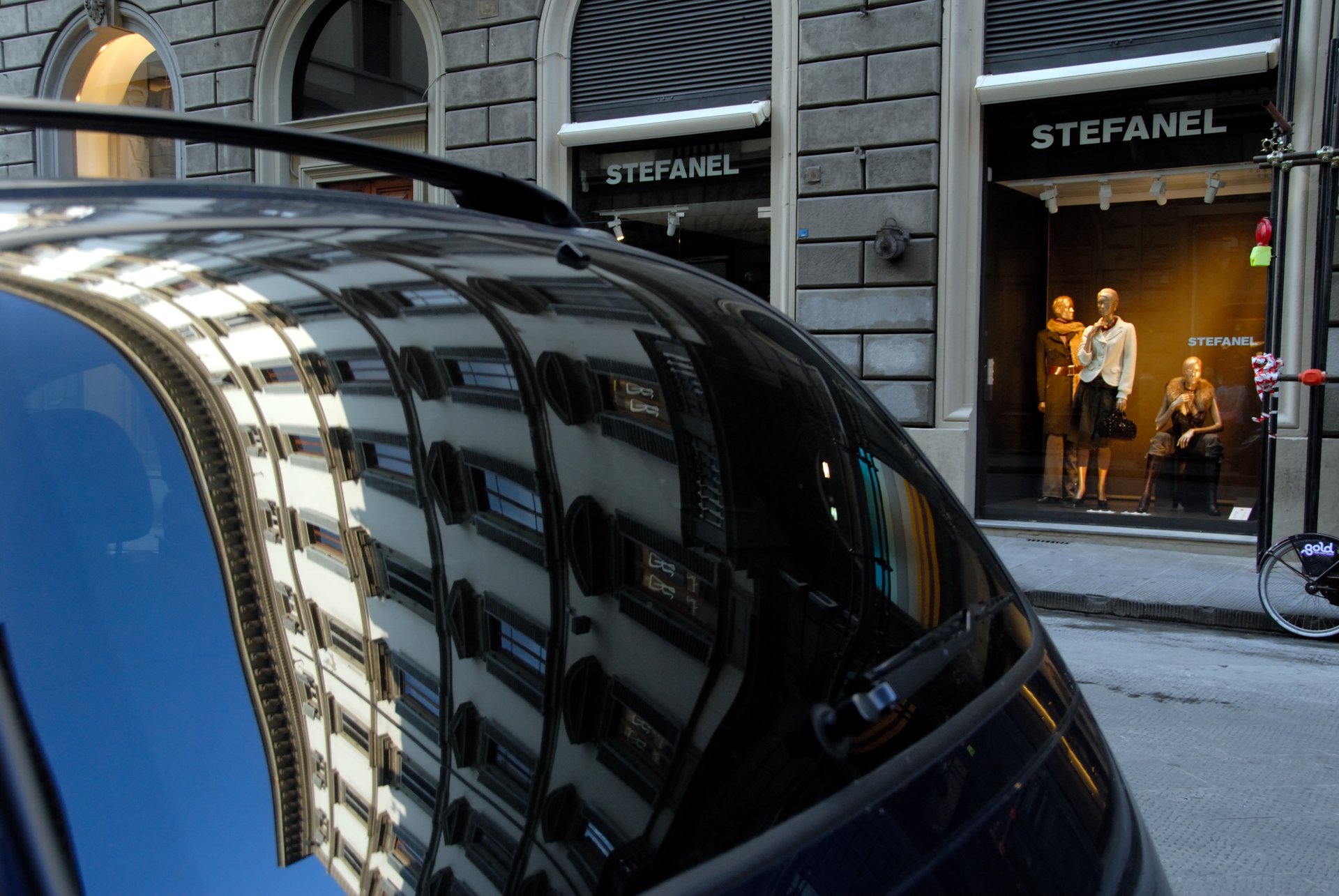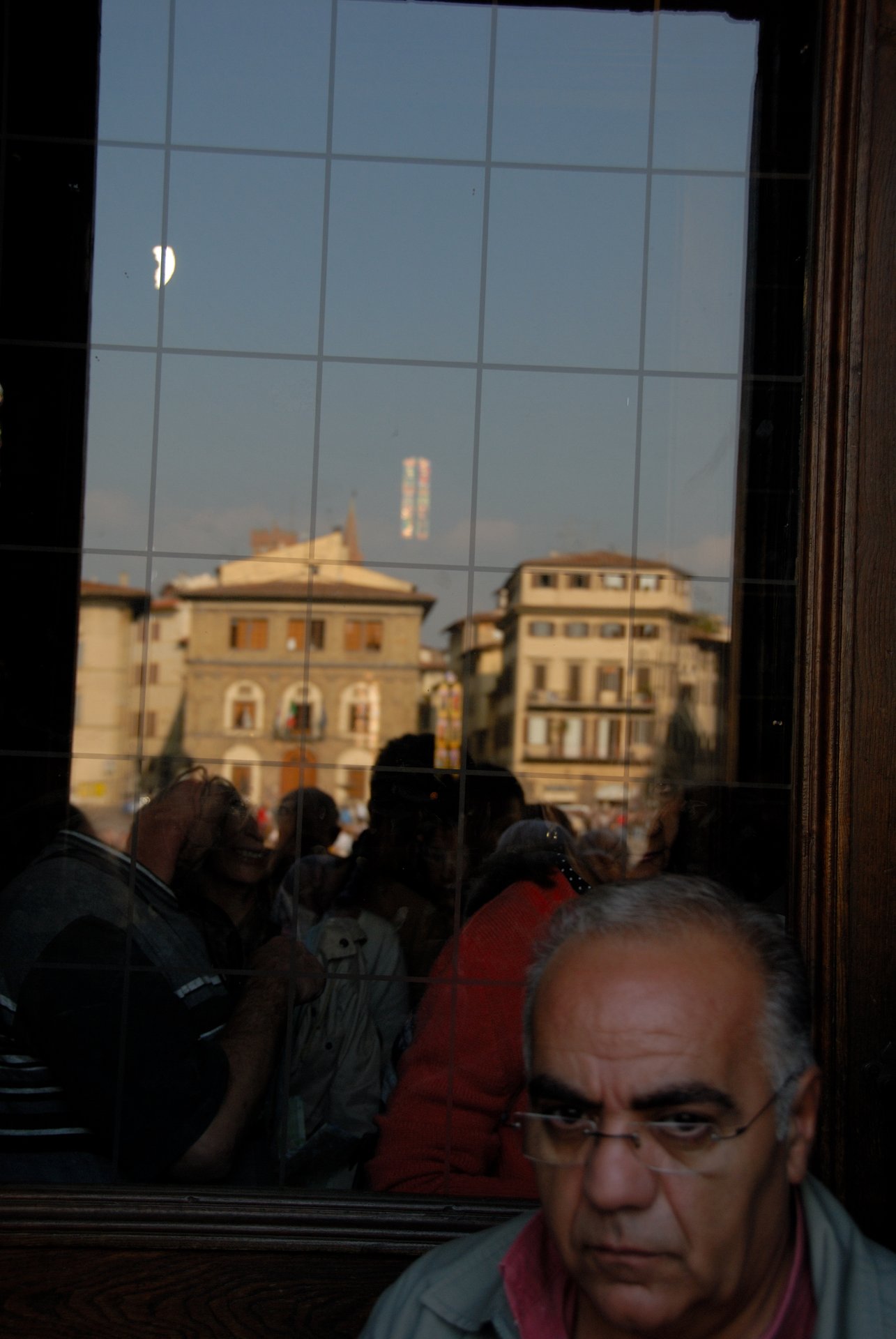 Florence 佛羅倫斯當我看到玻璃的櫥窗,我喜歡這樣的景物,等了一會,一位騎腳踏車的阿伯,自投羅網來了。