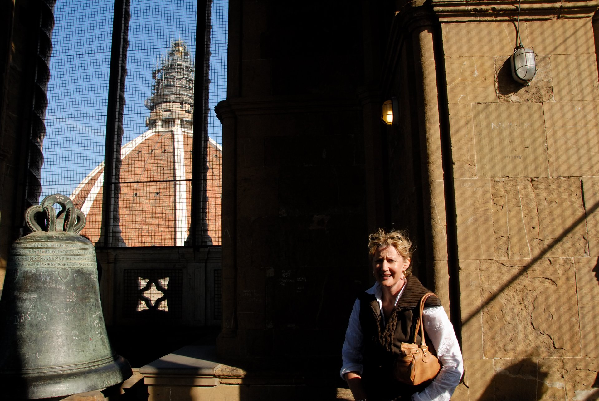 Florence 佛羅倫斯爬上百花大教堂旁,82公尺高的喬托鐘塔,這位氣喘吁吁的小姐,剛好落入我的等待中。