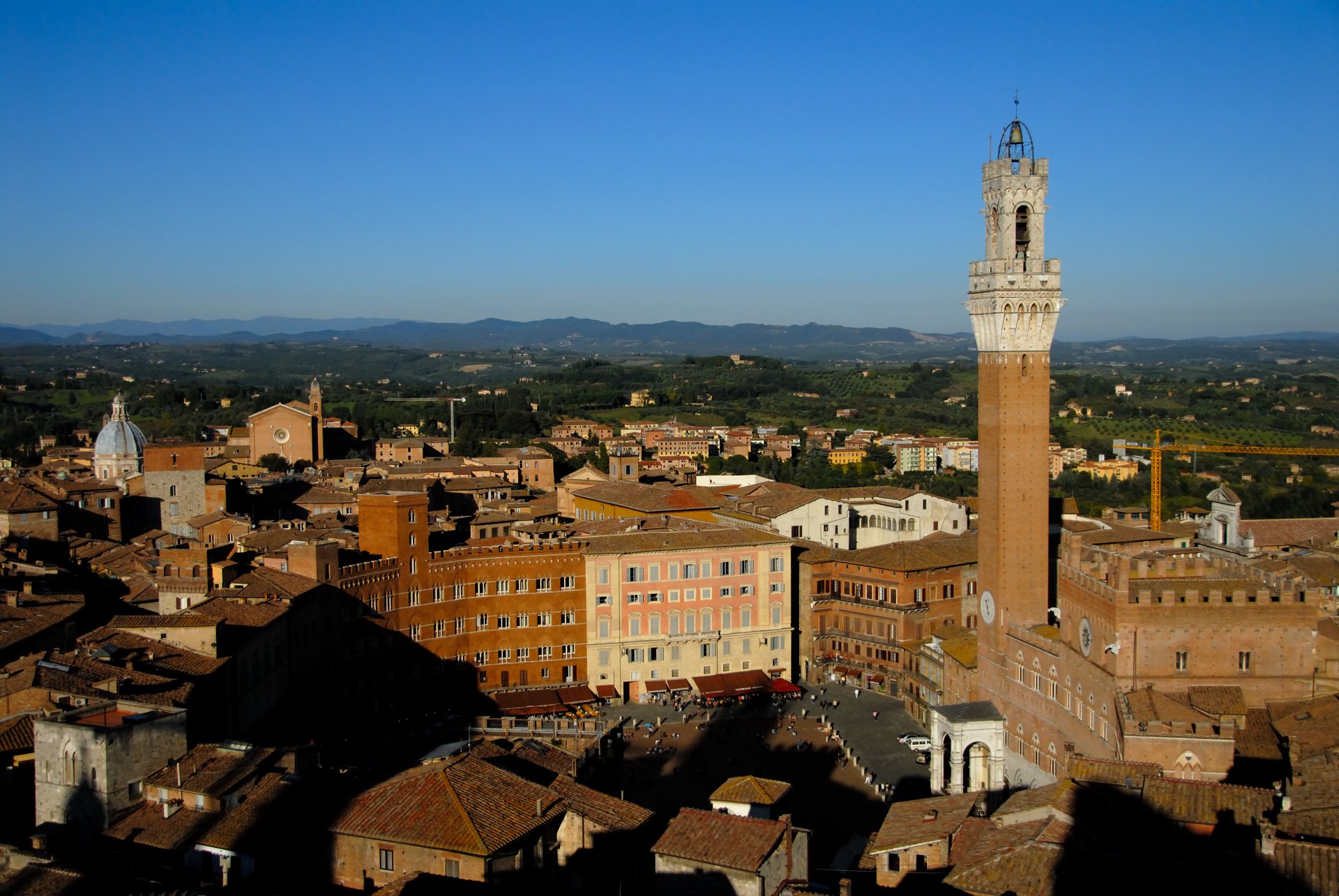 Siena 西恩納從博物館後方的高塔,眺望整個Siena舊城區,扇形廣場四周的道路,就是每年賽馬的跑道。