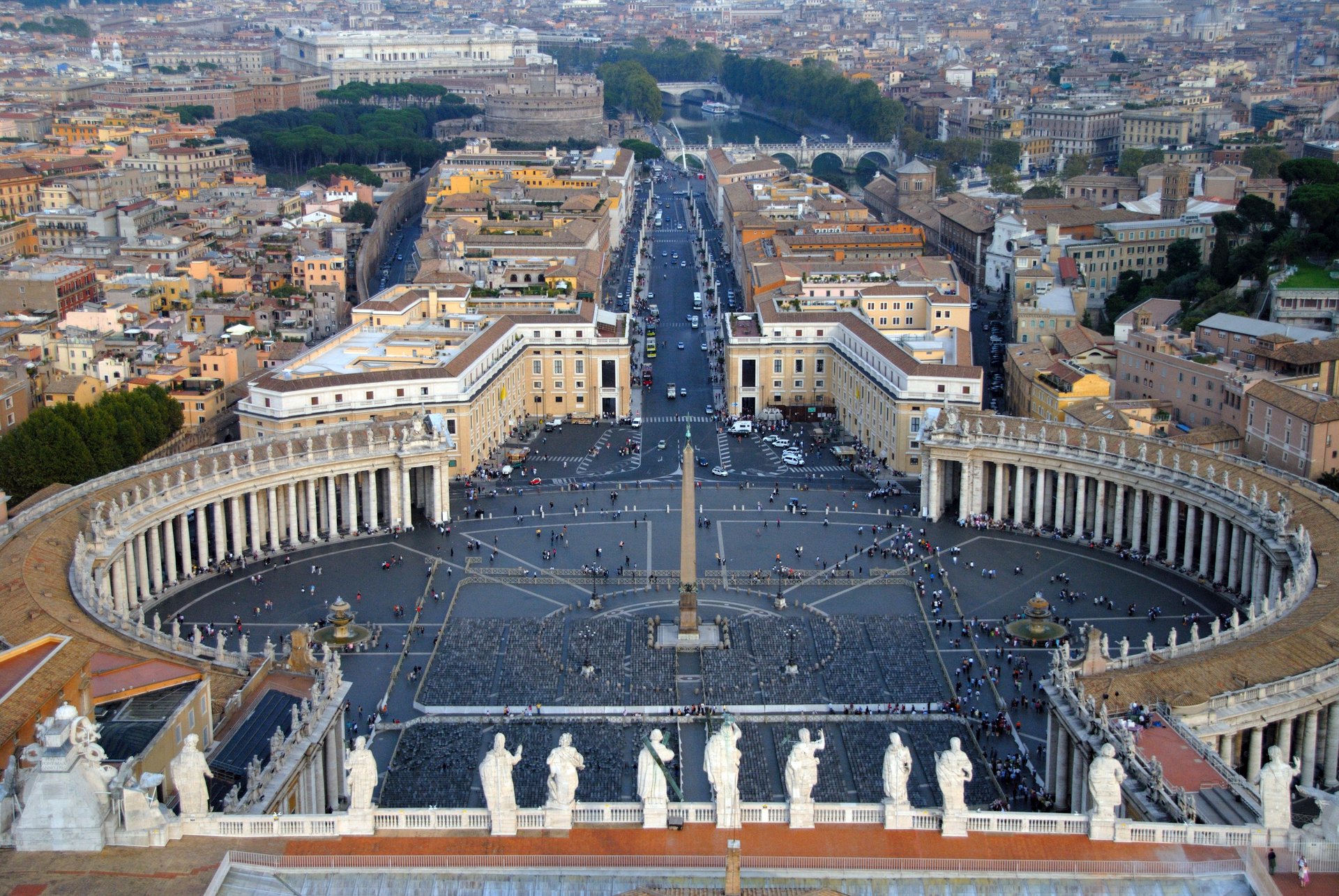 梵諦崗 聖彼得大教堂從聖彼得大教堂的圓頂往下望,橢圓形的廣場是貝尼尼設計的傑作。