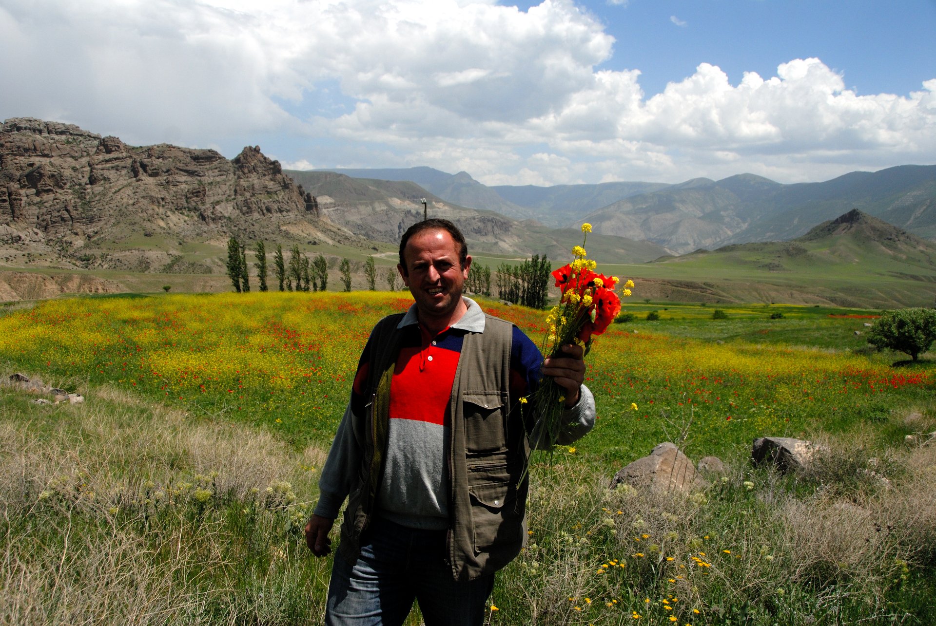 Olur隨行的當地人特地下車,摘了野花送給車上的女伴。