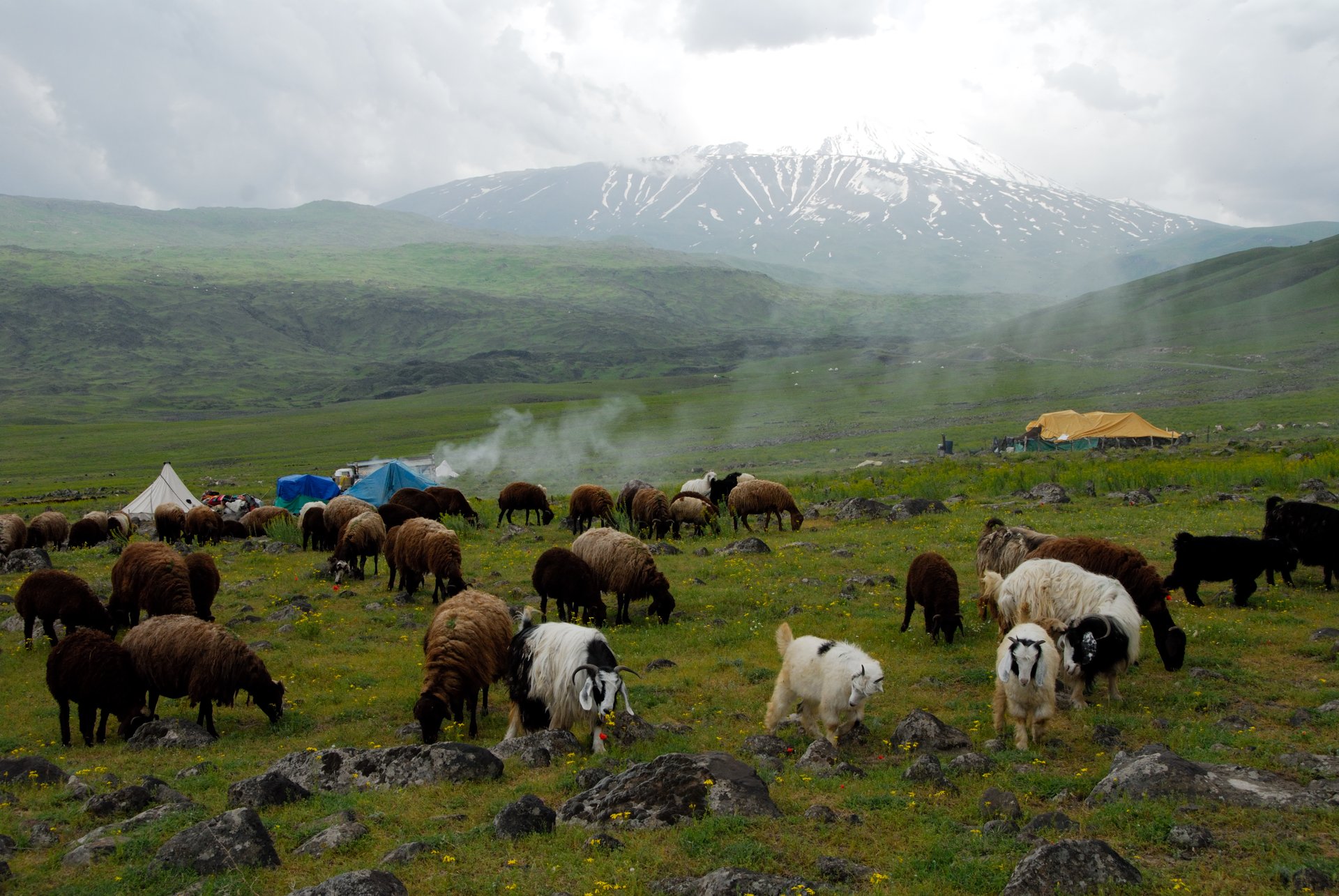 阿哉中午時分牧羊人正在野炊,後方白雪靄靄的山頭就是亞拉拉特山(Ararat Mt.)。