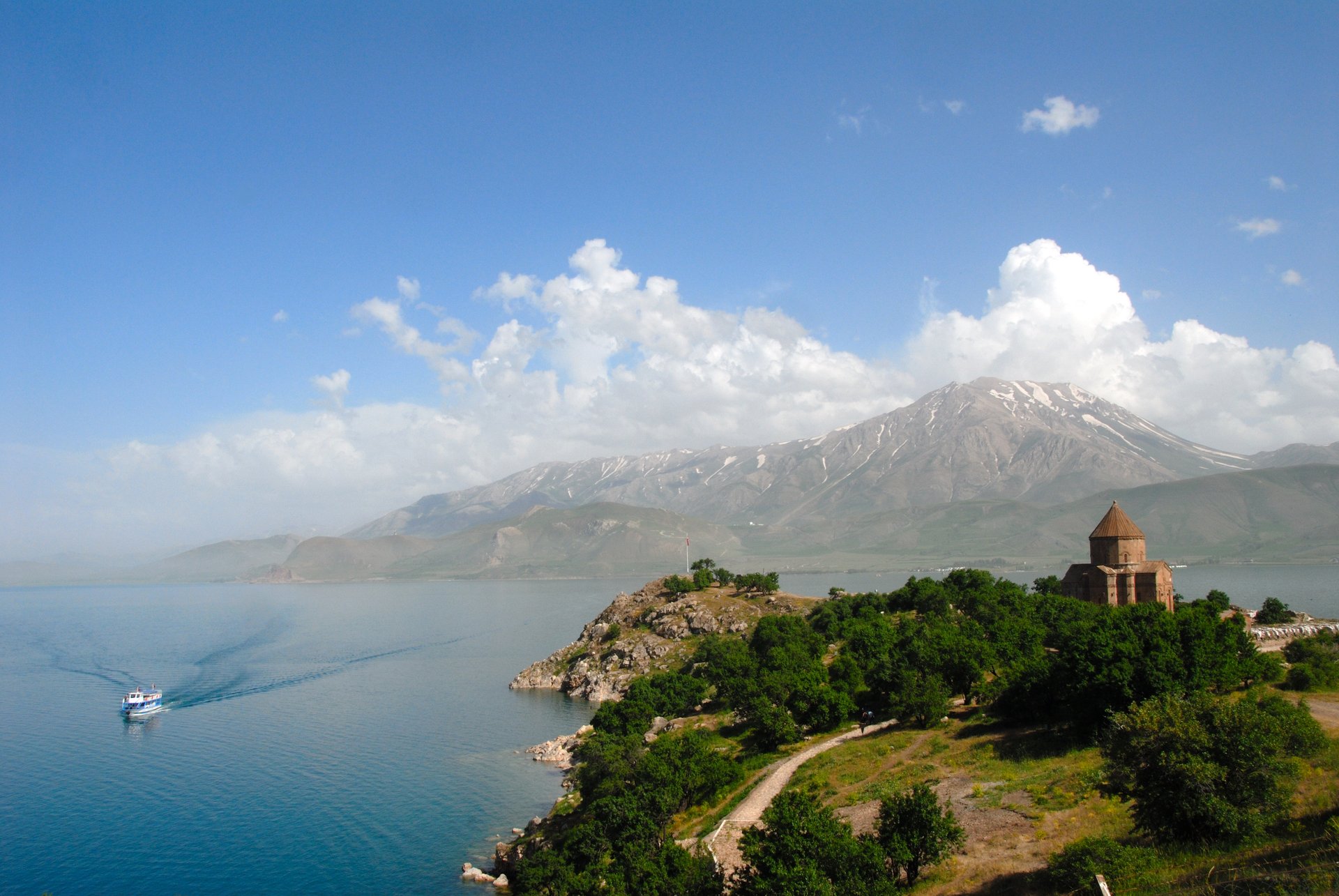 Akdamar Island 阿克達瑪島這是亞美尼亞人於十世紀建立的聖十字教堂,不過在1915年的亞美尼亞人種族屠殺事件中,完全被破壞。現狀是2007年3月才修復完成,還好土耳其人沒有修的太漂亮。