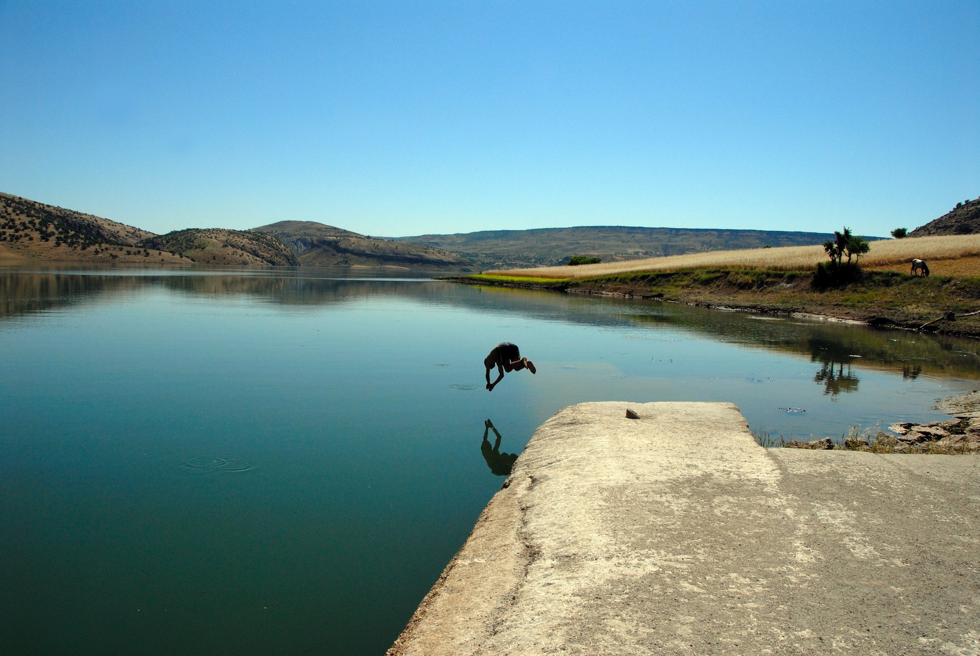 Hutkoy一位少年跳入水中,即將打破寧靜的水面,這時刻彷彿時間是靜止的。