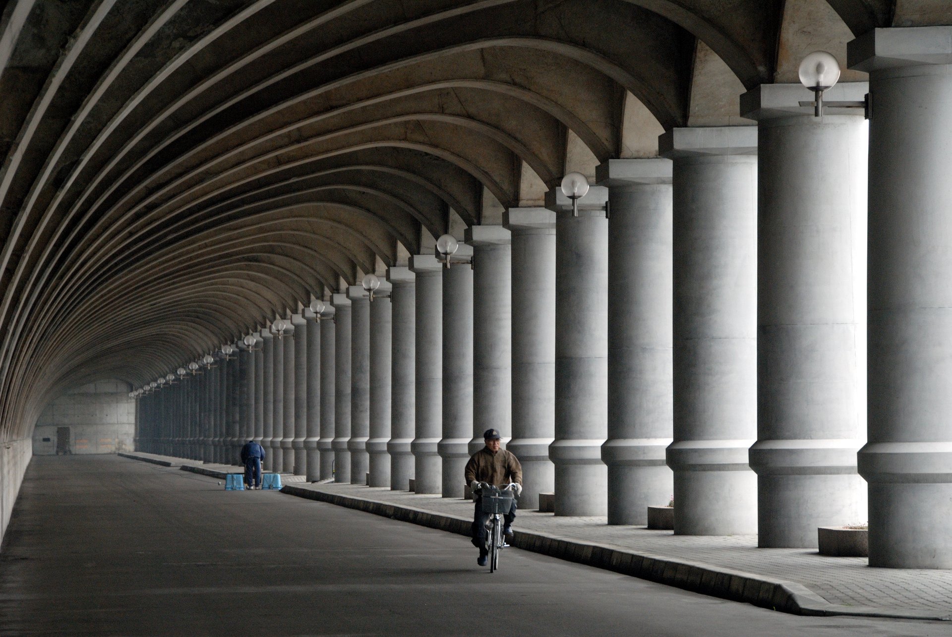 北海道 稚內北防波堤長427米是個有圓弧頂的防波堤,由70根圓柱形成的迴廊建築,很有古羅馬風格。