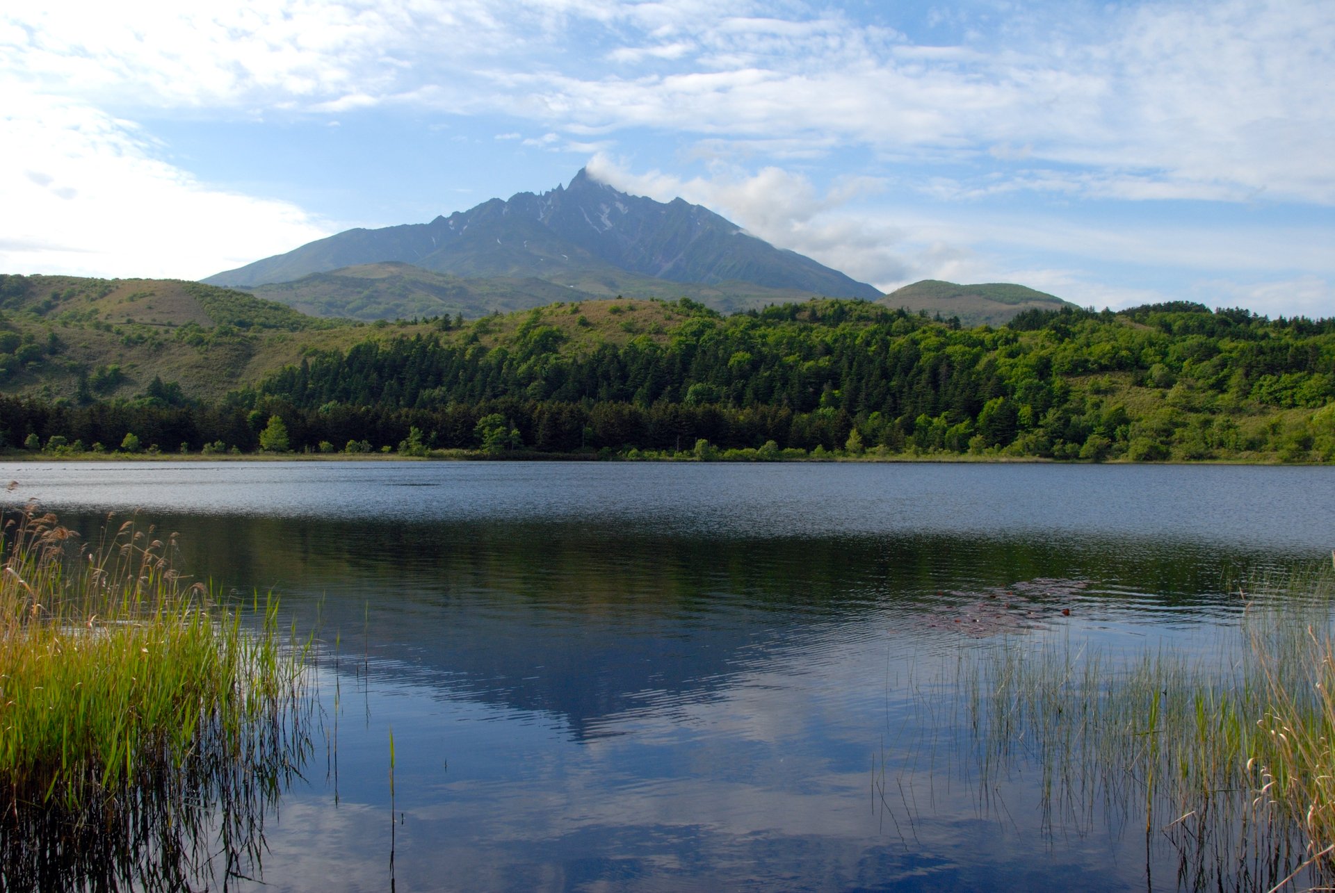 北海道 利尻島從オタトマリ沼看利尻富士山。
