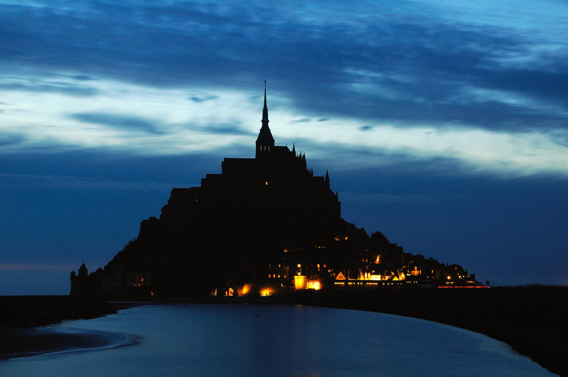 聖米歇爾山Mont-Saint-Michel晚間10點等待著拍攝夜景,天終於黑了,但是聖米歇爾山,卻異常的沒有打燈.雖然有點無耐,還是拍吧!