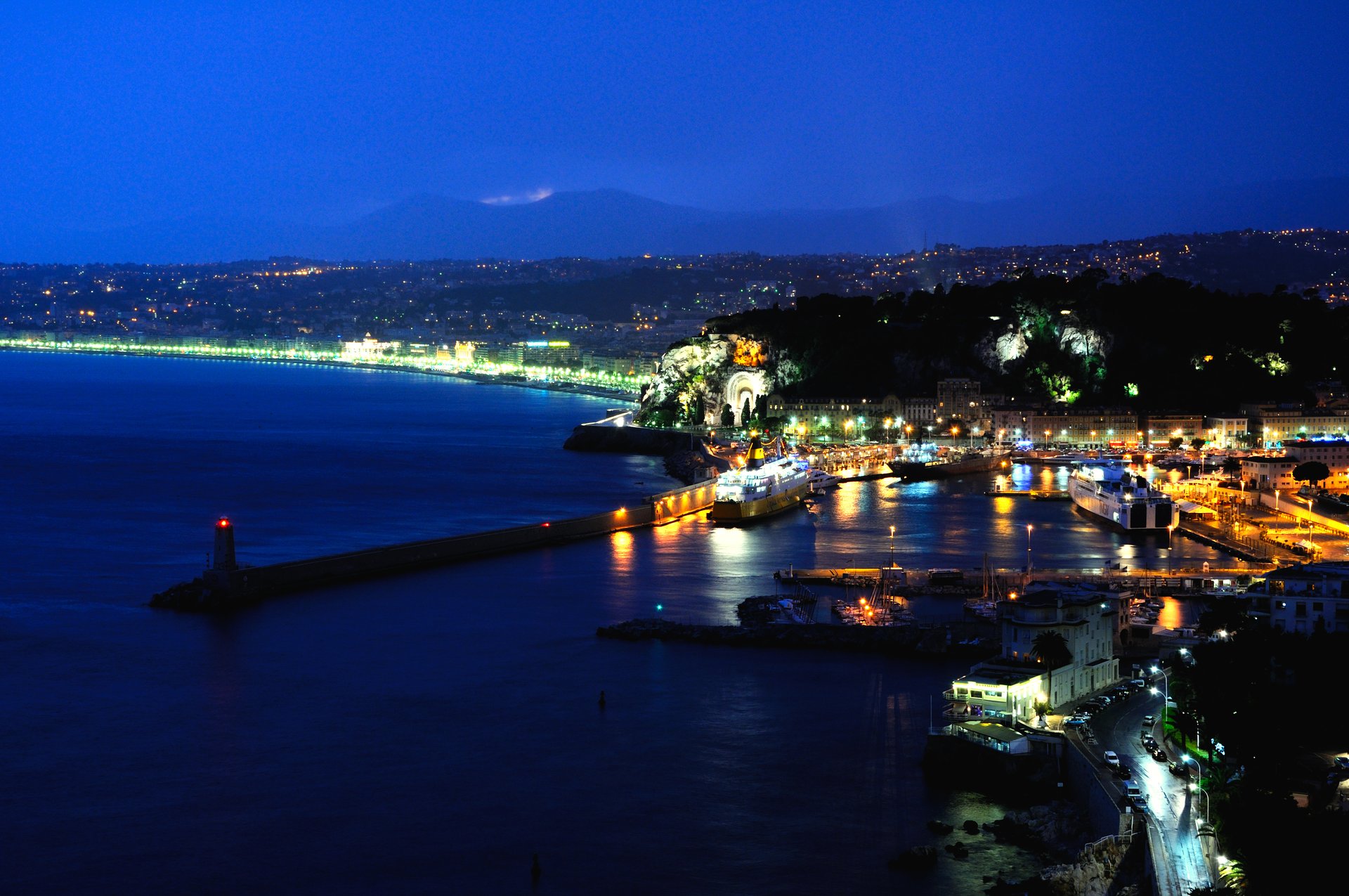 尼斯Nice華燈初上的尼斯港口有點少人,不過遠方最亮處的"英國人大道",卻熱鬧非凡。