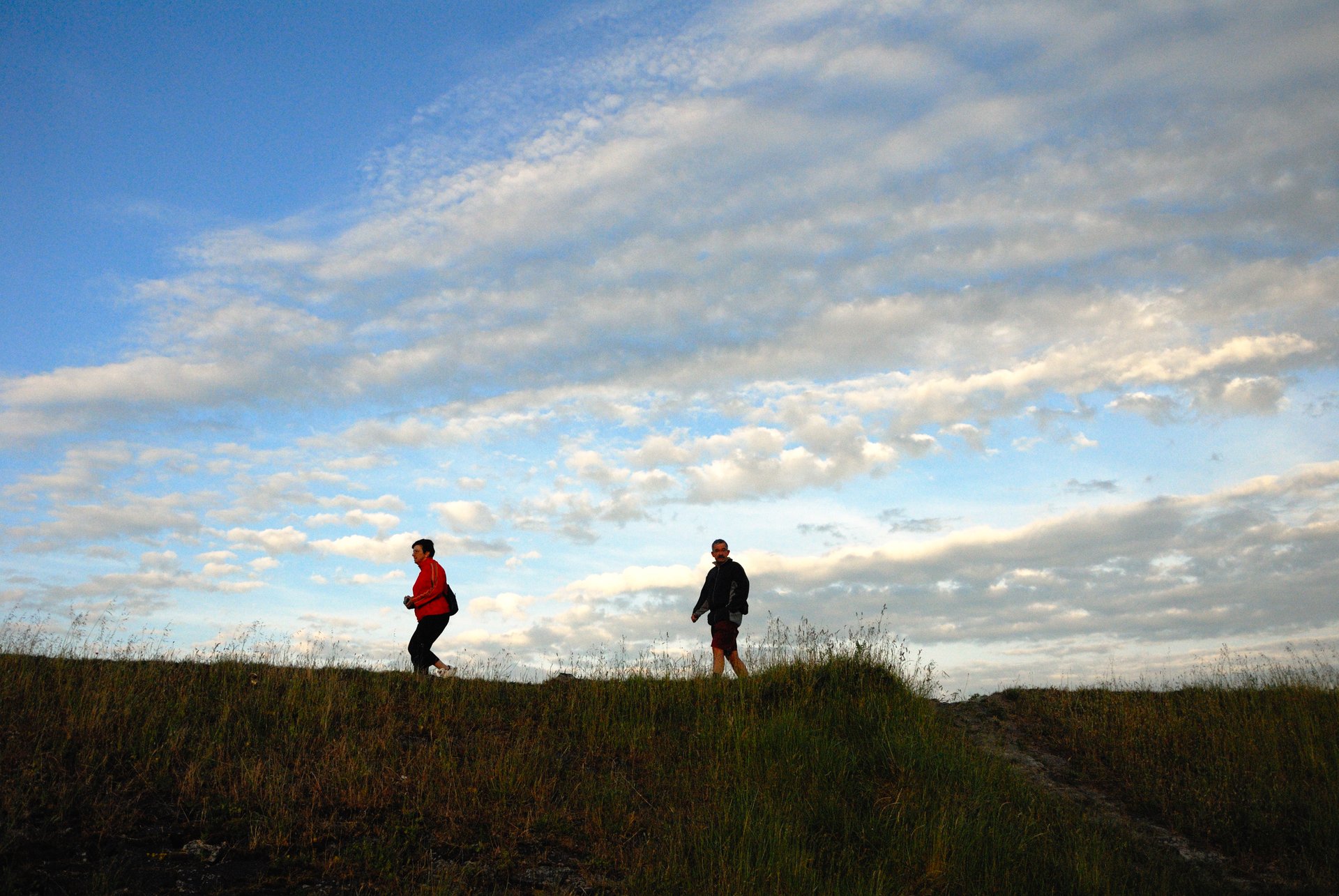 象鼻海岸Etretat爬上南邊的山坡,我們正站在大象的頭頂上。這裡風很大海很藍。