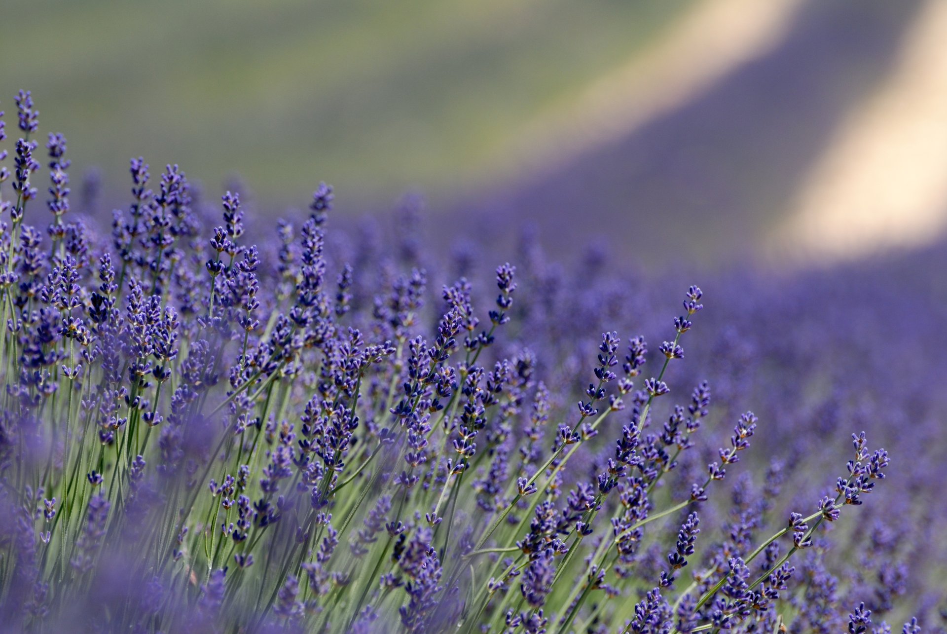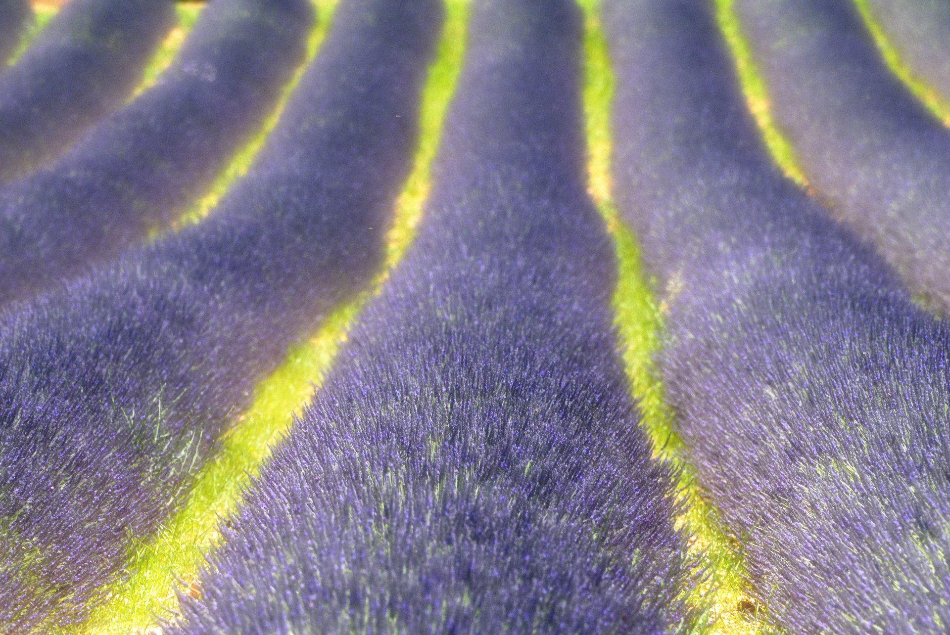 Moustiers-Sainte-Marie路旁熱情洋溢的薰衣草,與遠處寧靜悠雅的枯樹形成對比。