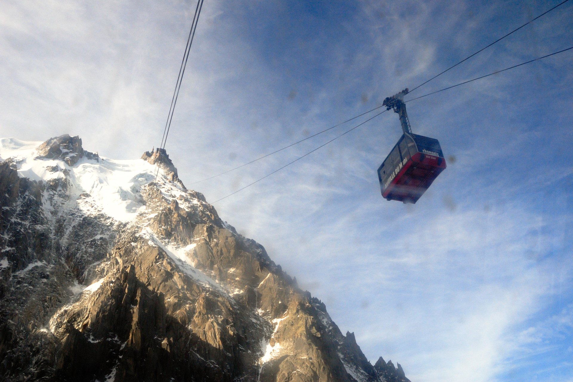 夏摩尼-白朗峰 Chamonix Mont Blanc一早搭乘纜車由夏摩尼(標高1035公尺)上到南針峰(標高3842公尺), 連接兩地的纜繩斜度之大, 猶如搭乘電梯般的直線上升。