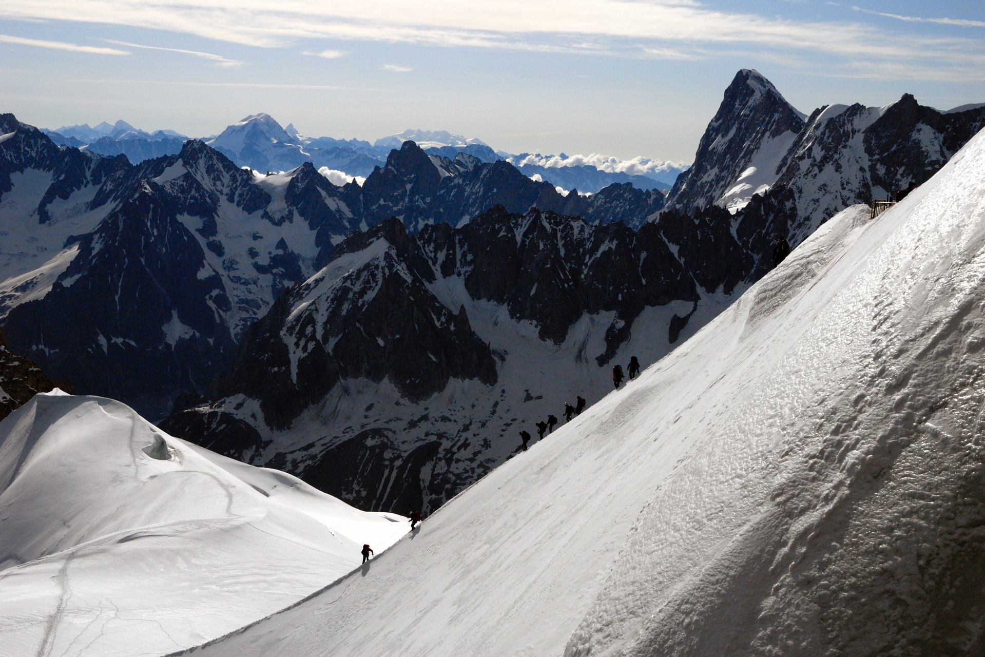 夏摩尼-白朗峰 Chamonix Mont Blanc熱愛刺激的登山客,結著繩隊一步步走向冒險的旅程。