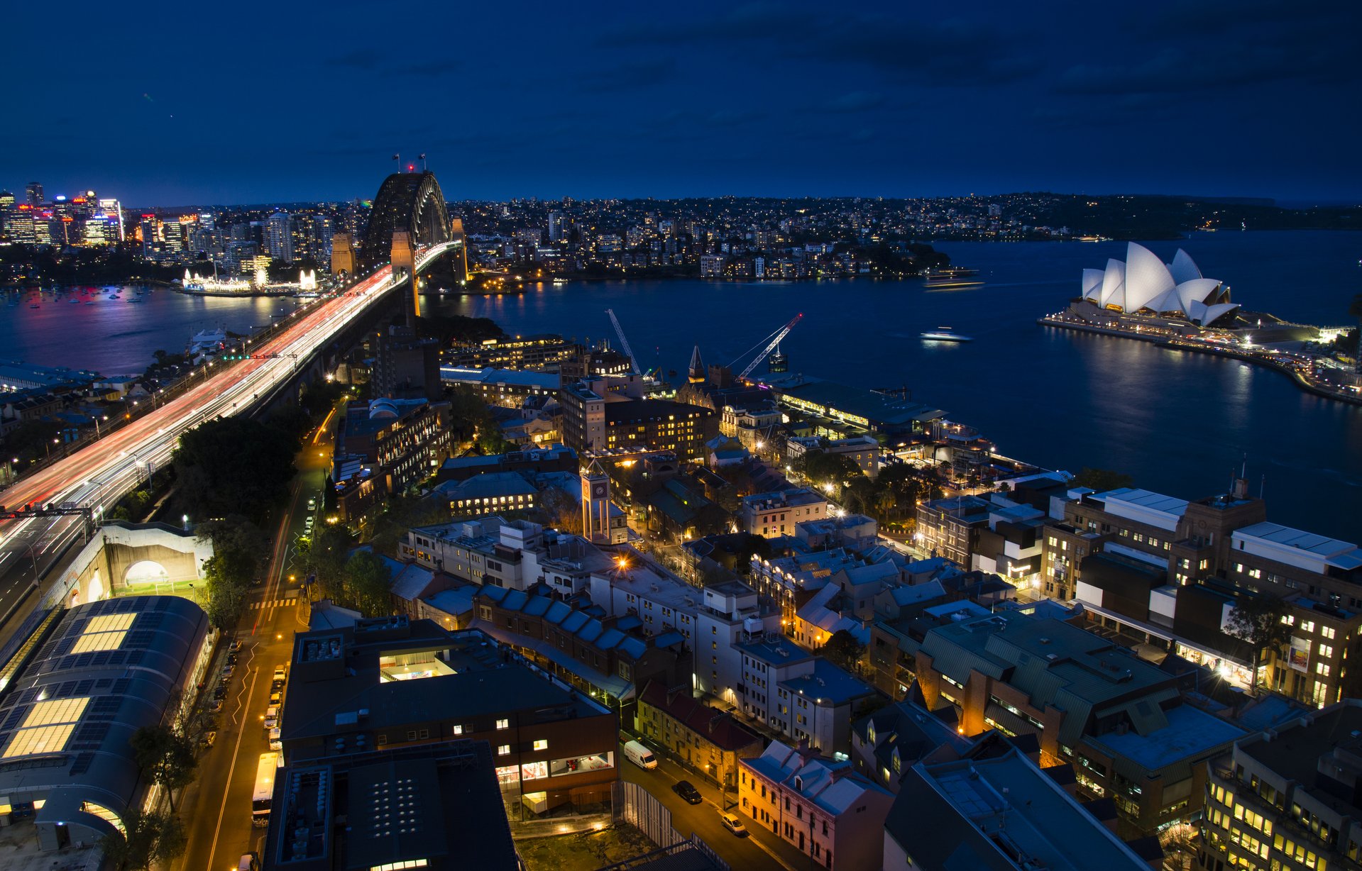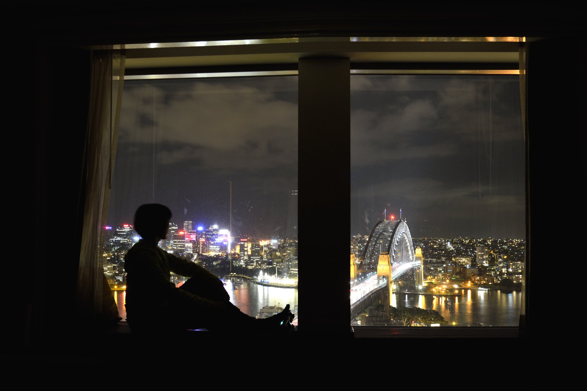 Sydney 雪梨從旅館房間的窗戶往外望,就是雪梨著名的景點。左邊的港灣大橋,右邊的雪梨歌劇院,這是最棒的夜景觀賞地點。