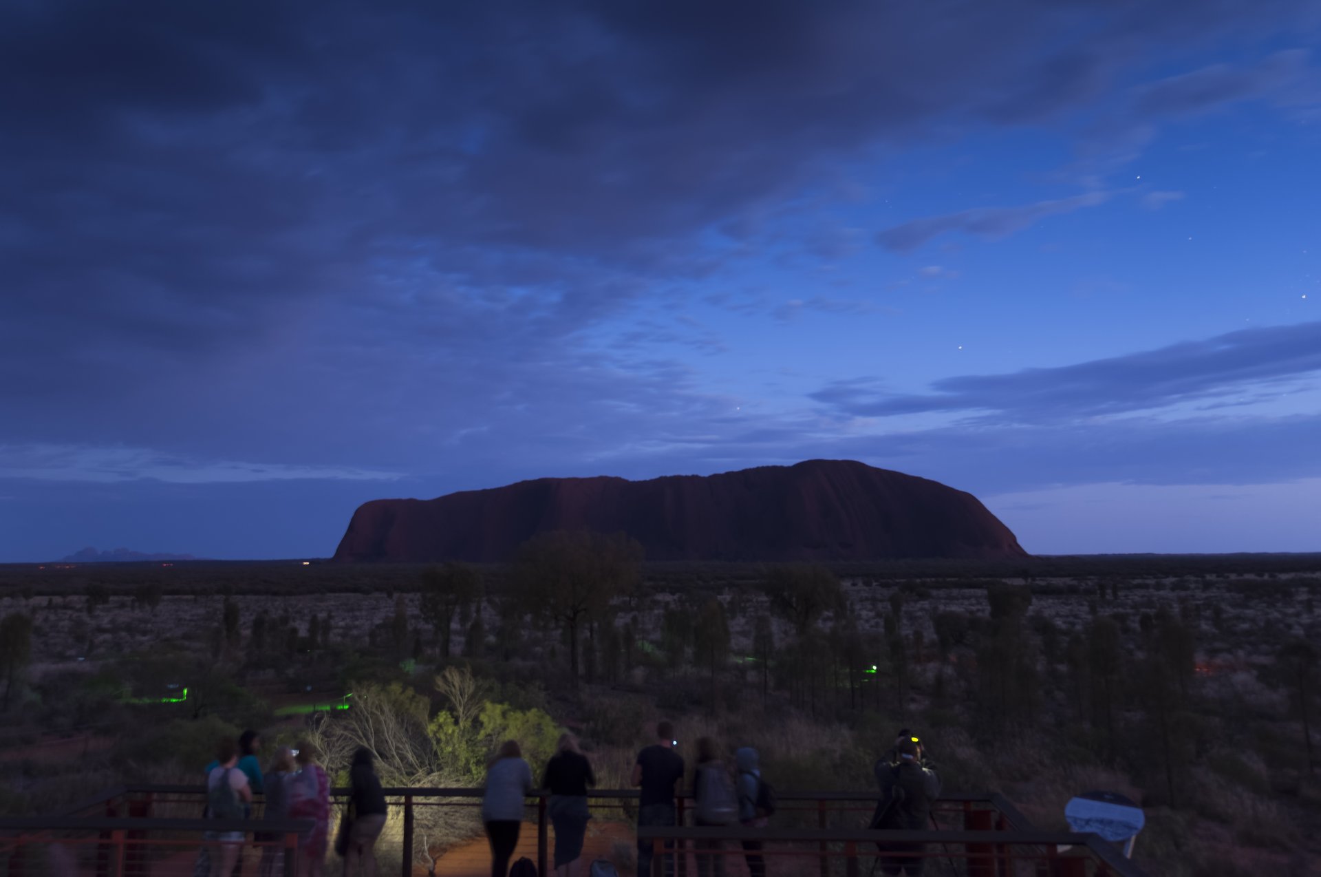 Uluru 烏魯魯烏魯魯觀景台,為了方便觀看日出的遊客行走,貼心地設立綠色燈光,對長曝來說卻是嚴重的光害。