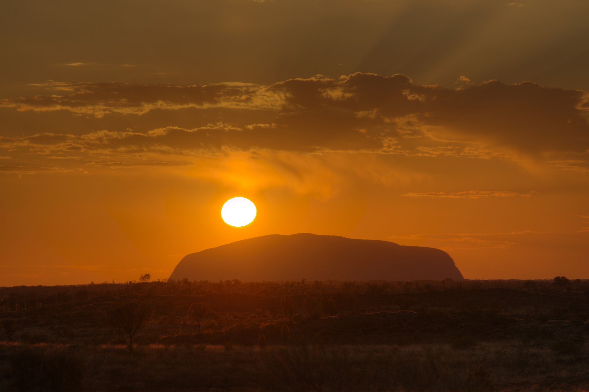 Uluru 烏魯魯遠遠的從風之谷觀景台,回看烏魯魯的日出,火紅太陽冉冉升起。