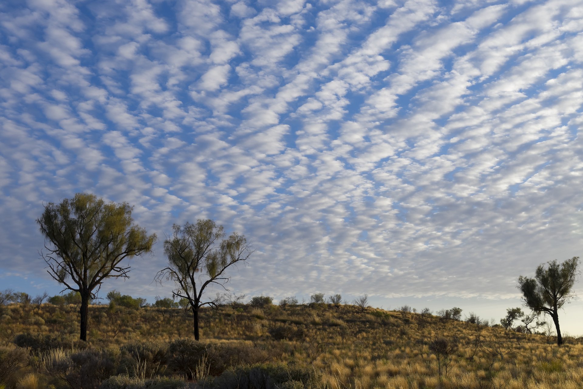 Uluru 烏魯魯清晨的烏魯魯,Uluru岩顏色沒有紅得嚇人,陽光躲在雲縫中不肯出來見人。