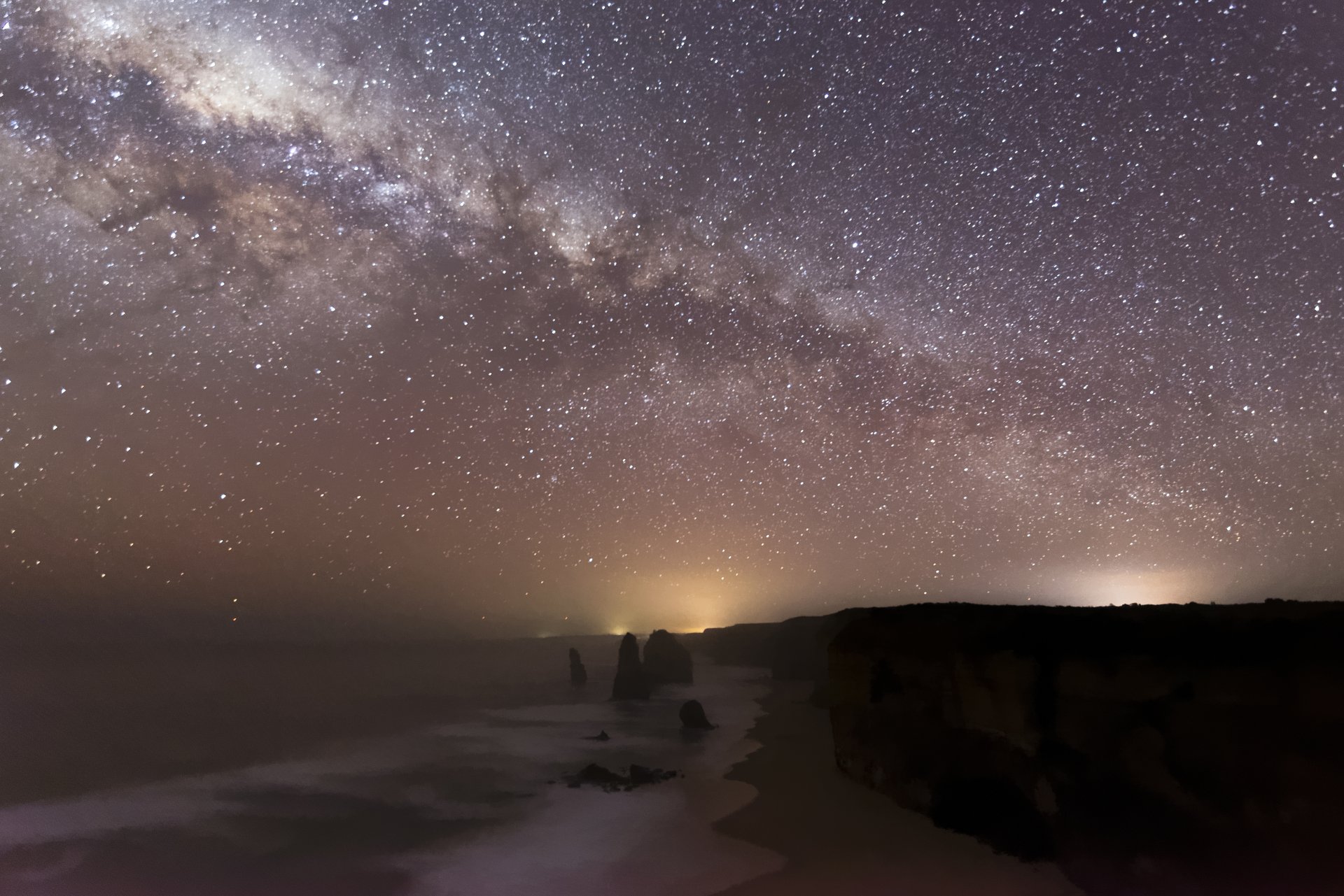Twelve Apostles 12門徒岩春天大洋路的夜,風很大很冷。12門徒觀景台裡,白天嘈雜的遊客早已散去。天上的銀河緩緩流動,星星們開始上班打卡。而我也開始我晚班的工作,記錄下這個奇異美景。