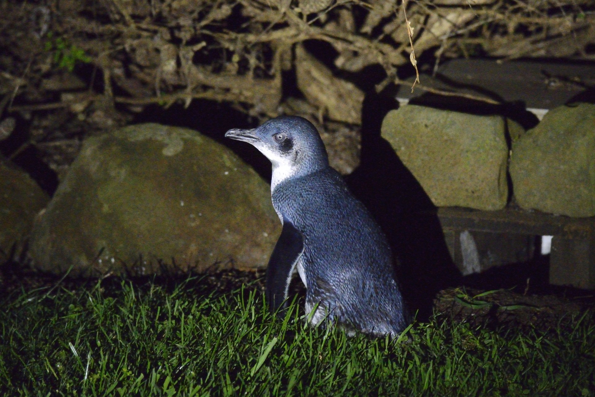 Stanley 斯坦利寒風中在民宿後方海邊,等到企鵝倦鵝歸巢。這是用微弱的頭燈,加上12800高ISO拍到的。