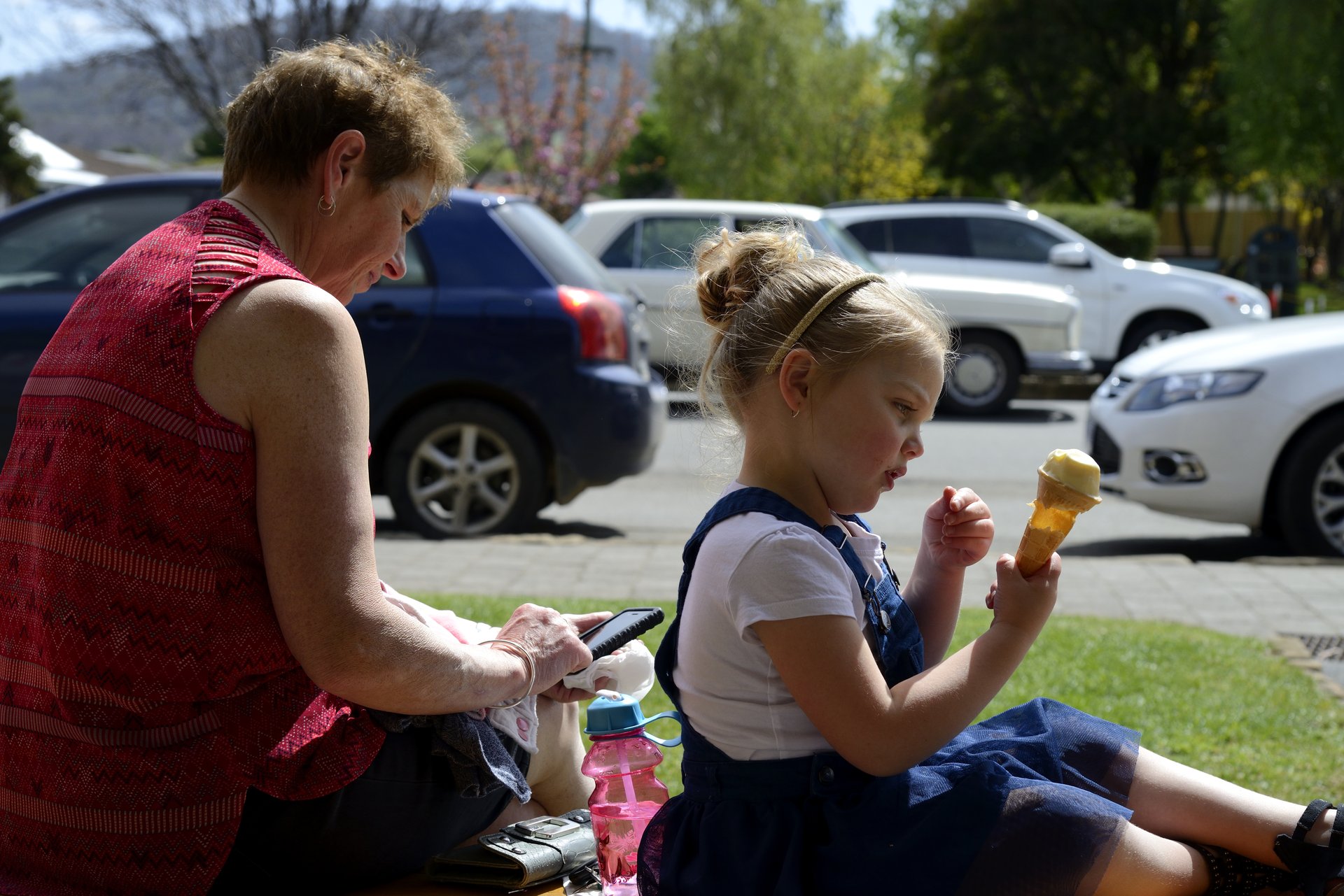 Richmond里奇蒙冰淇淋人人愛吃,不過旁邊的阿嬤好像對手機比較有興趣!