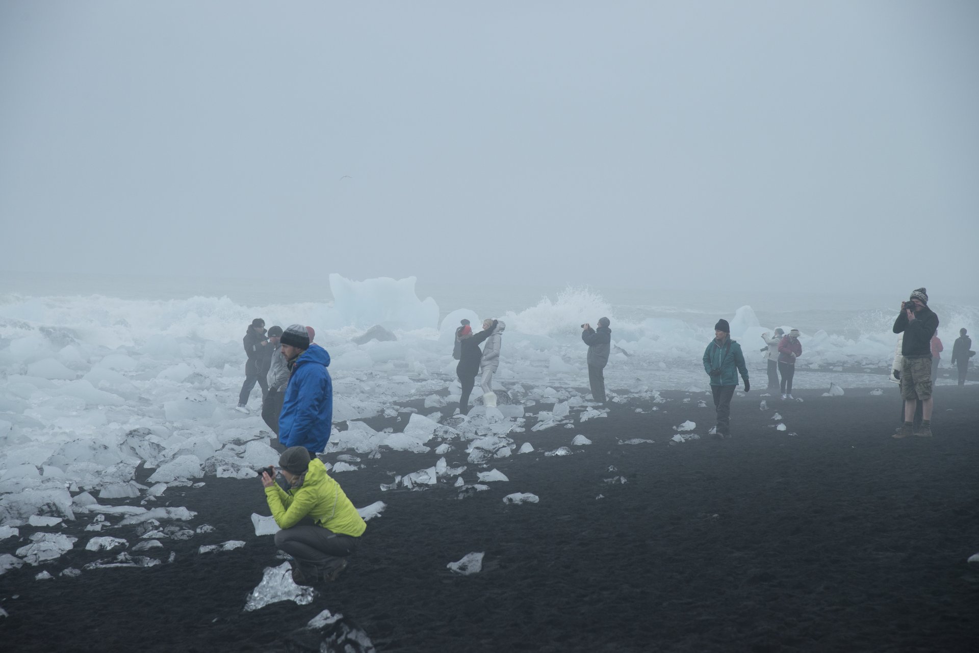 Jokulsarlon Lagoon 冰河湖清晨的冰塊沙灘上,天氣不是很好,但也熱鬧非凡。