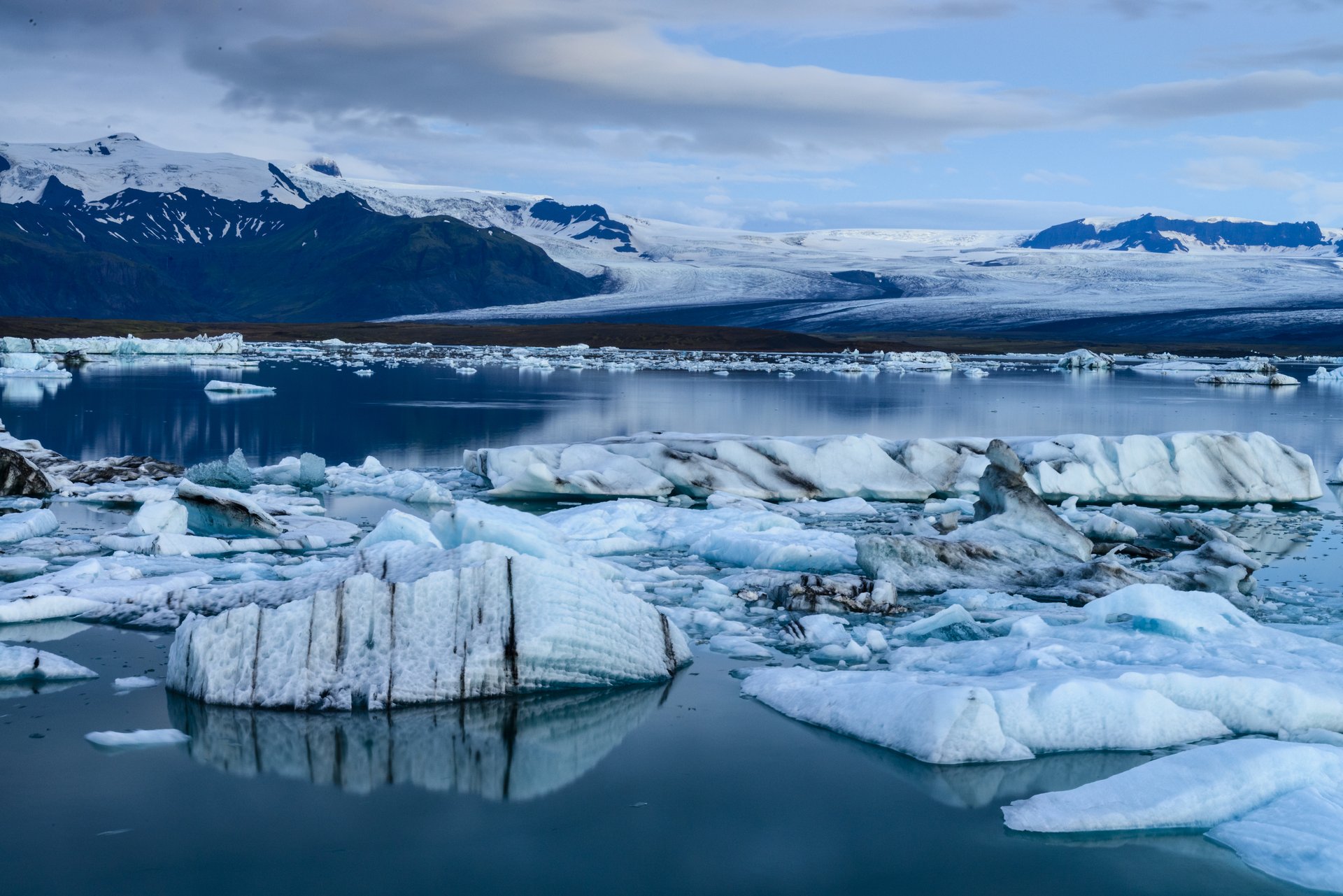 Jokulsarlon Lagoon 冰河湖冰川前緣被擠壓掉進湖裡的冰塊,漂浮在冰河湖上。